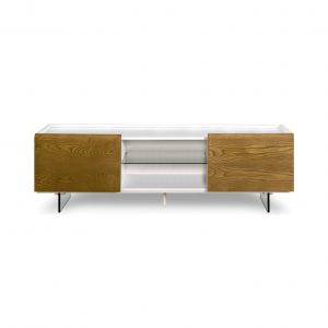 • Recibidor / mesa de TV HARMONY CRISTAL BLANCO ESTRUCTURA CROMO