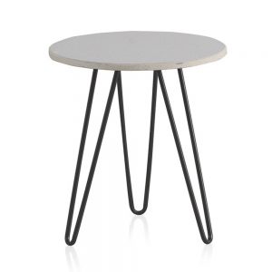 • MESA AUXILAR TAPA MARMOL BLANCO CON PATAS METALICAS