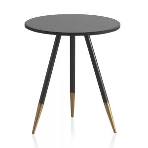 • MESA AUXILIAR TAPA MARMOL NEGRO CON PATAS METALICAS
