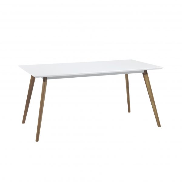 Mesa con tapa de madera lacada color blanco. Patas de madera de roble.