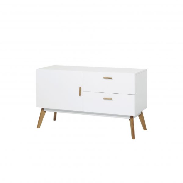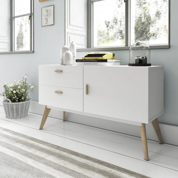 Aparador lacado blanco combinado con madera de roble.