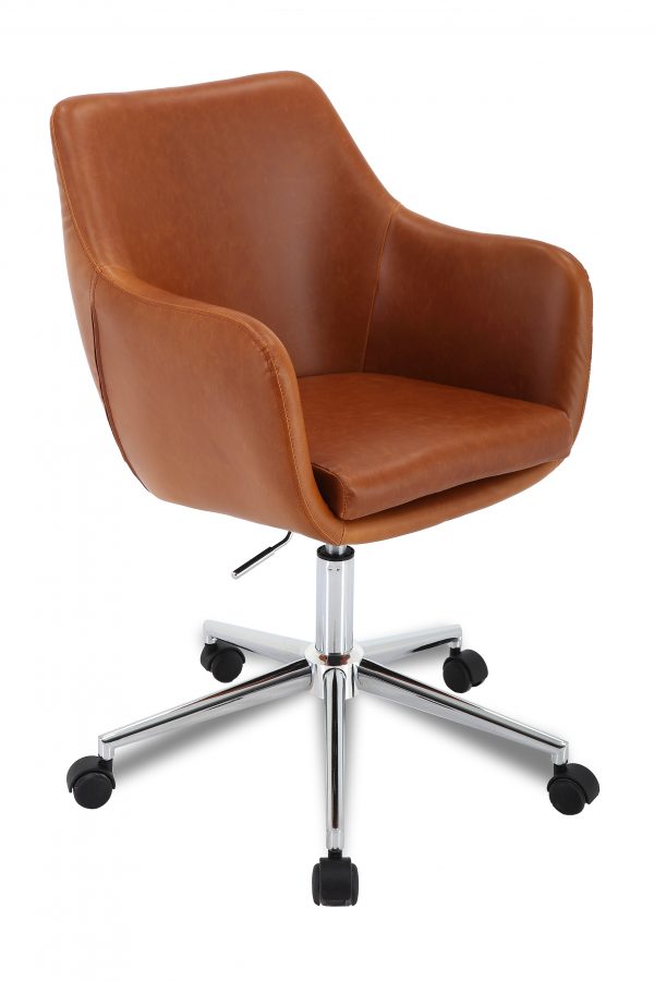 simil piel vintage. Base, palanca regulable y tubo hidráulico cromados.