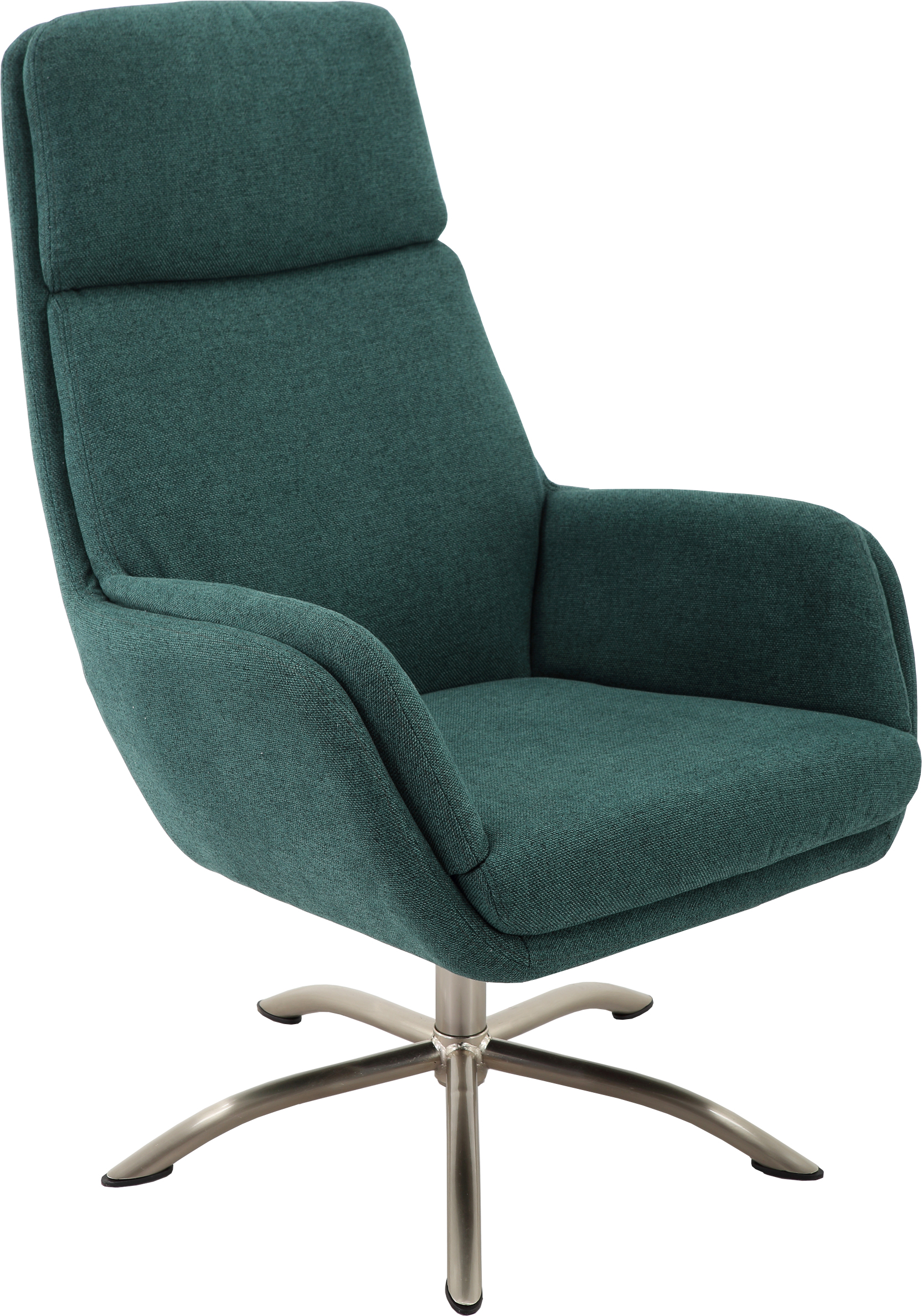 Sillón giratorio 360º, tapizado en tela color VERDE esmeralda. Base