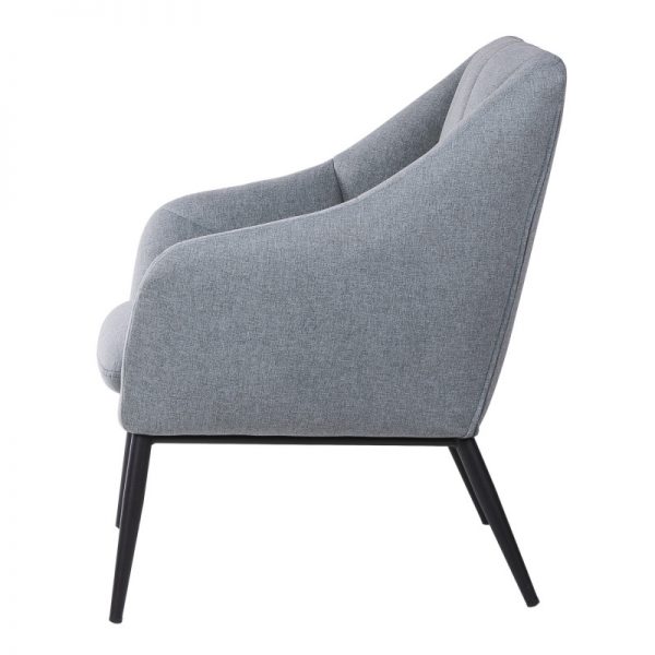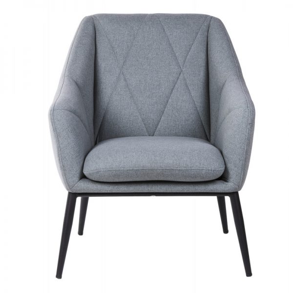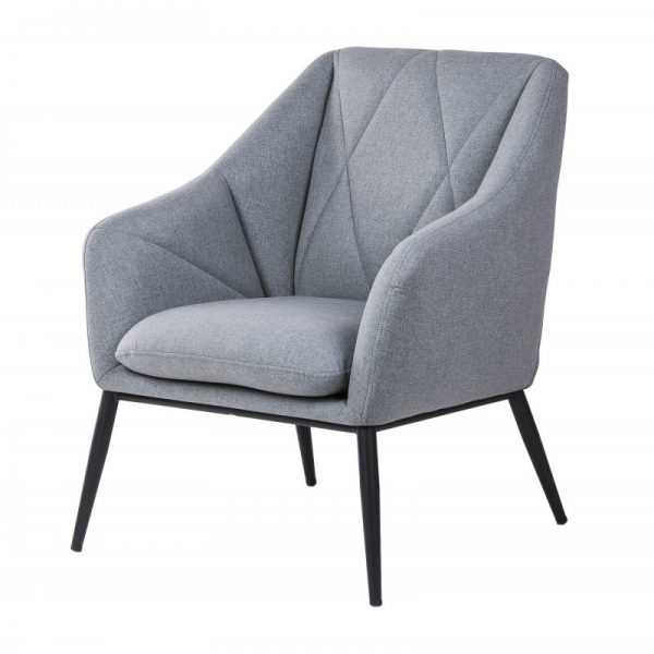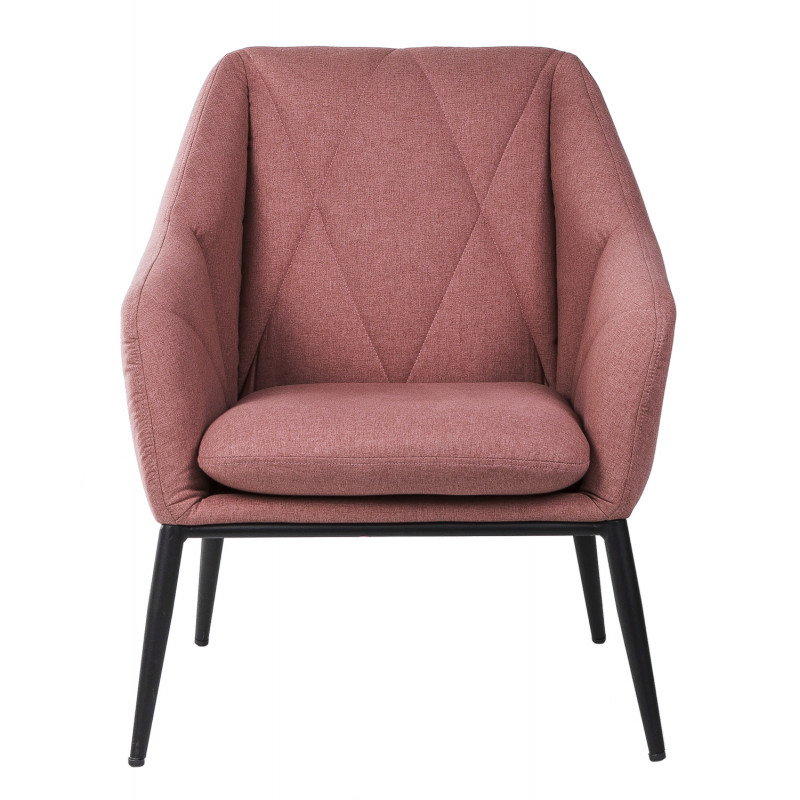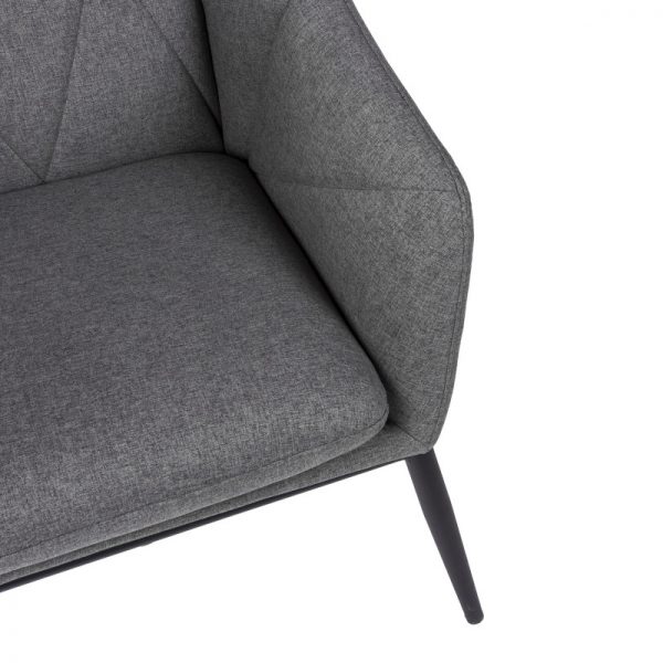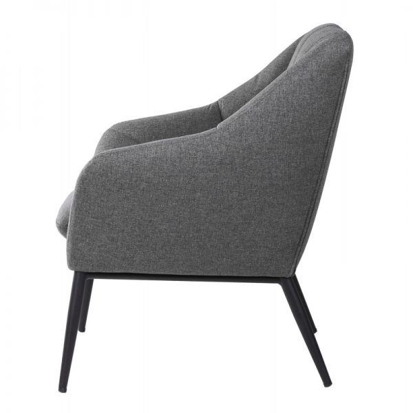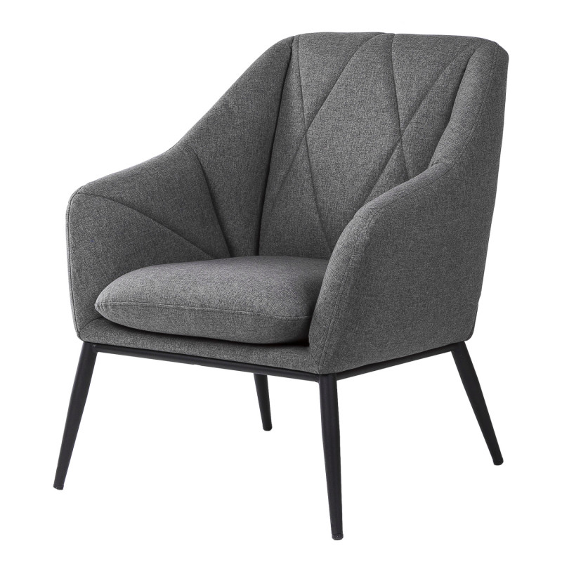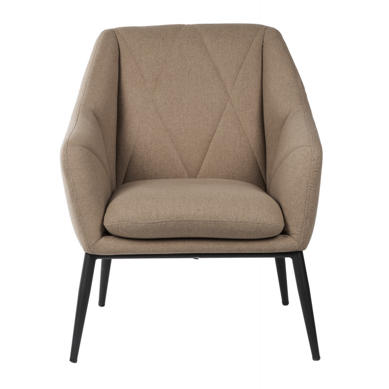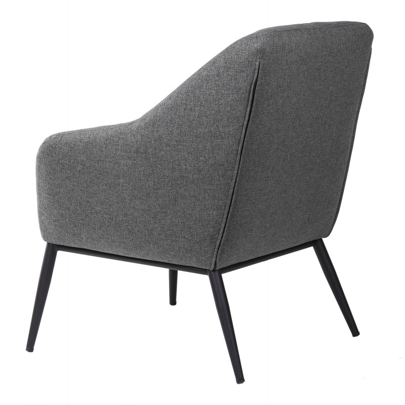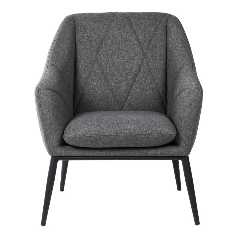 Butaca tapizada con patas ligeramente inclinadas en metal acabado en color negro mate.