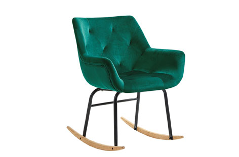 - – Tapizada en tejido gris/ beige/ velvet verde.