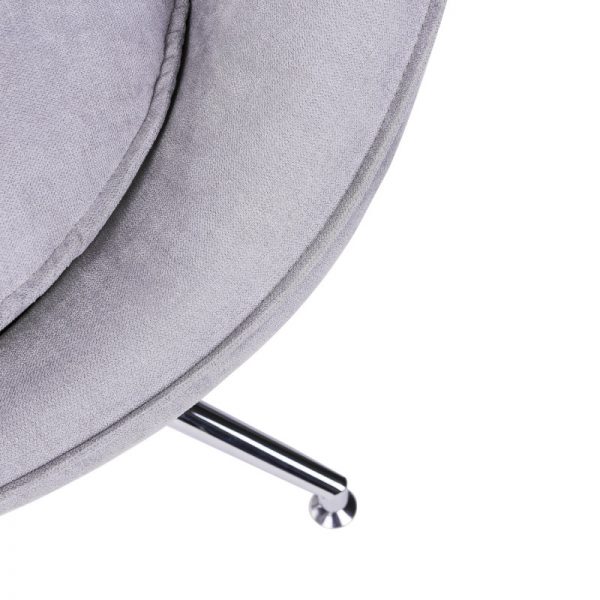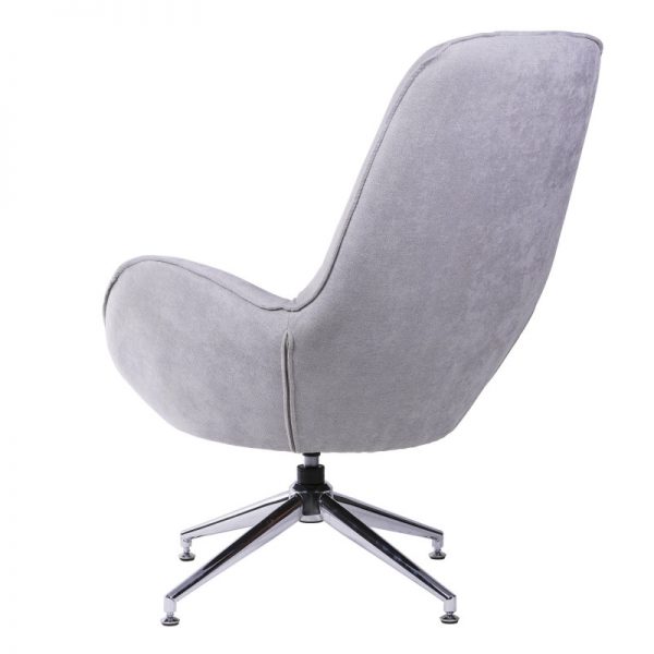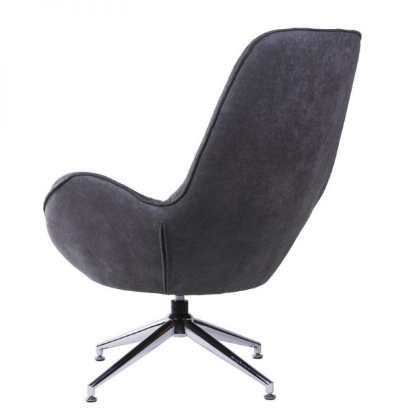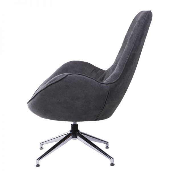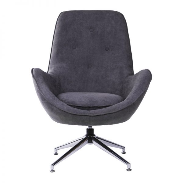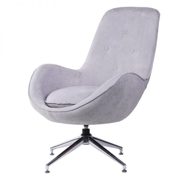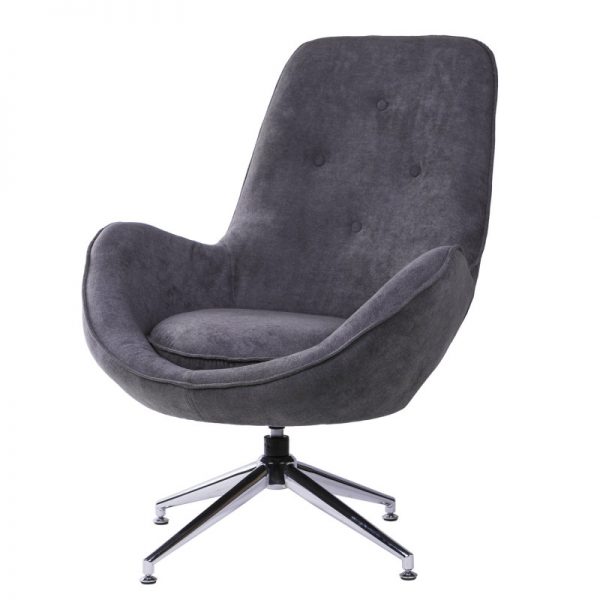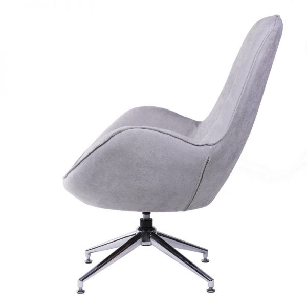 Butaca tapizada con base giratoria metálica en acabado cromado.