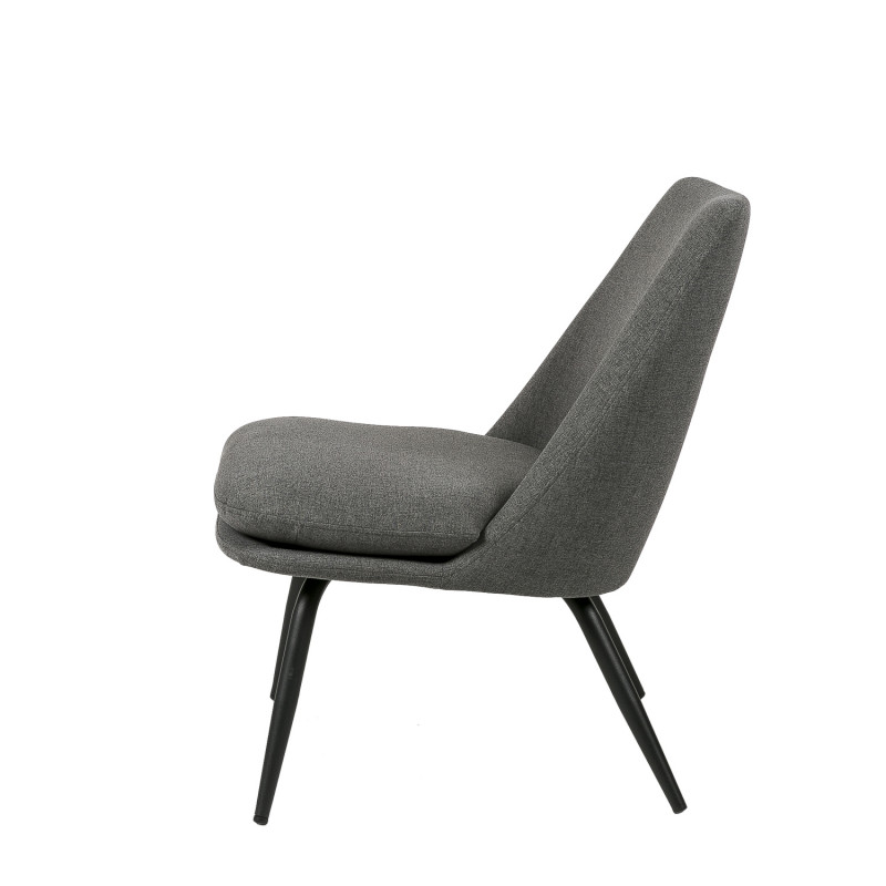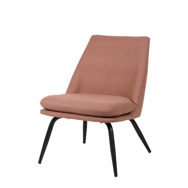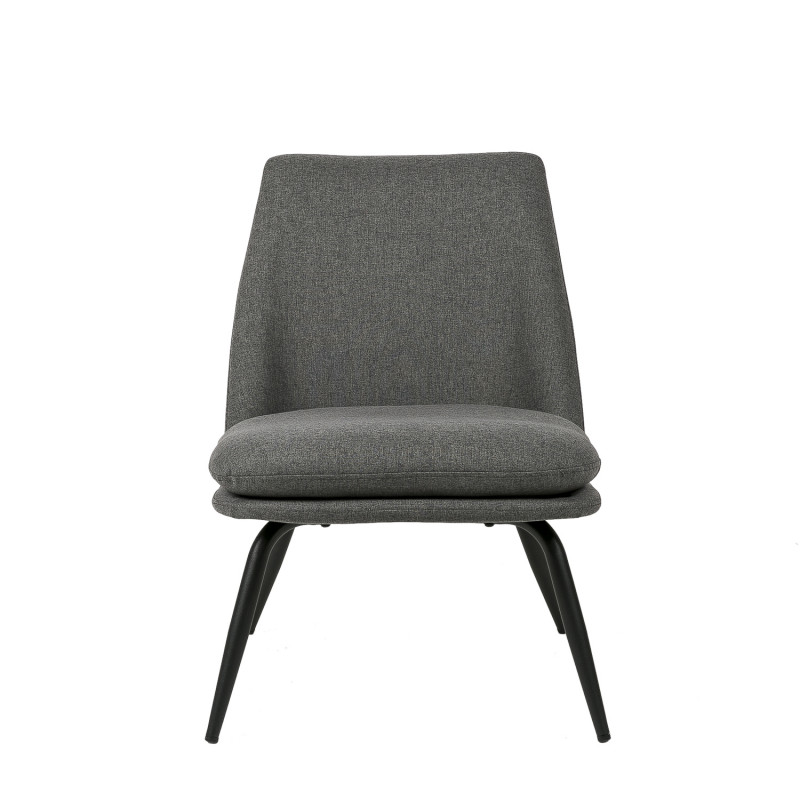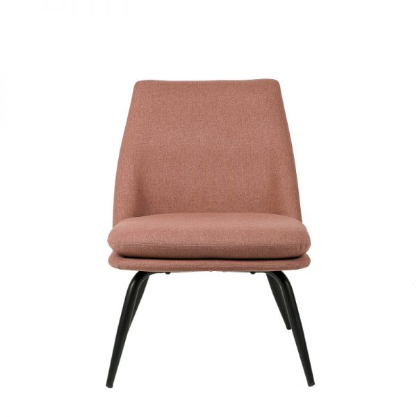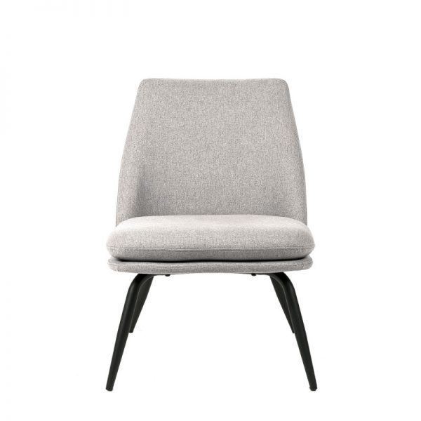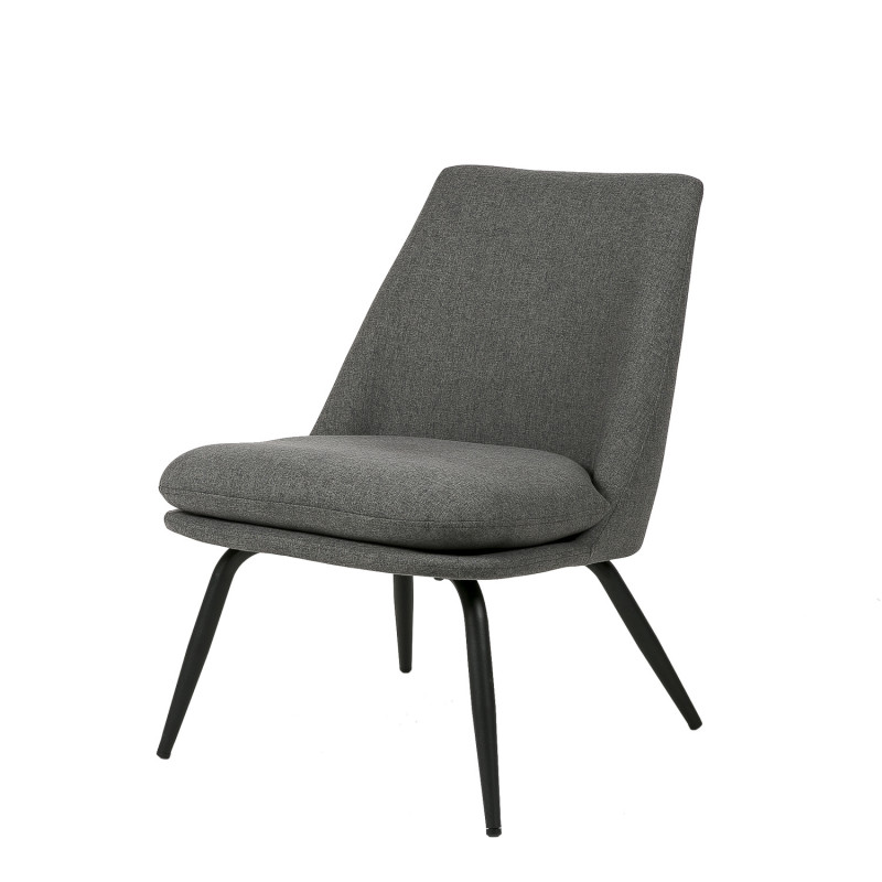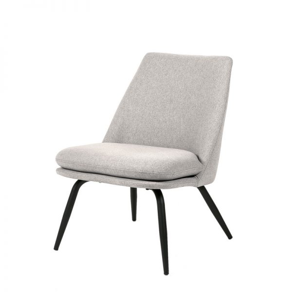Butaca tapizada con patas ligeramente inclinadas en metal acabado en color negro.
