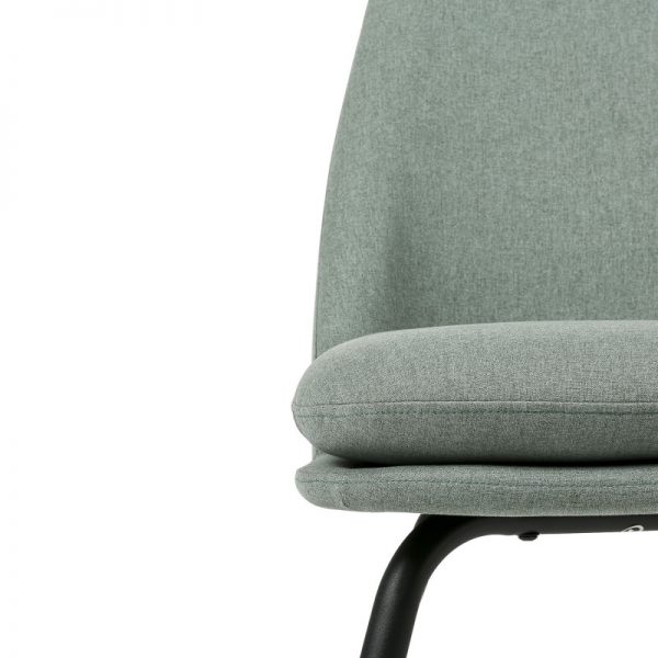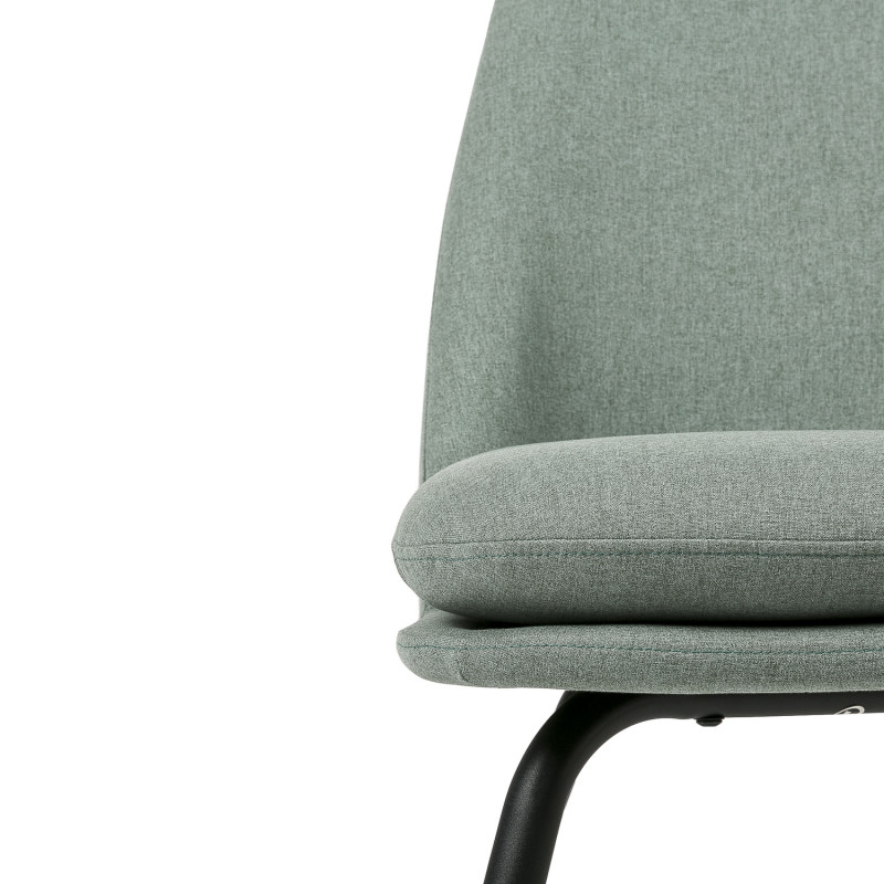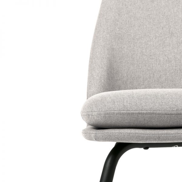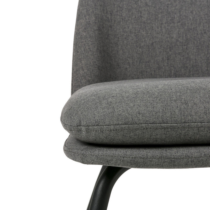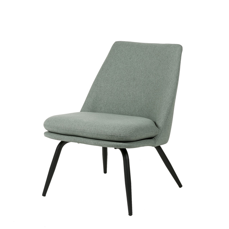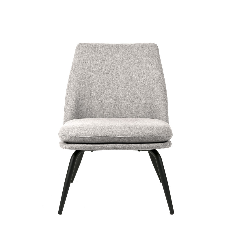 Butaca tapizada con patas ligeramente inclinadas en metal acabado en color negro.