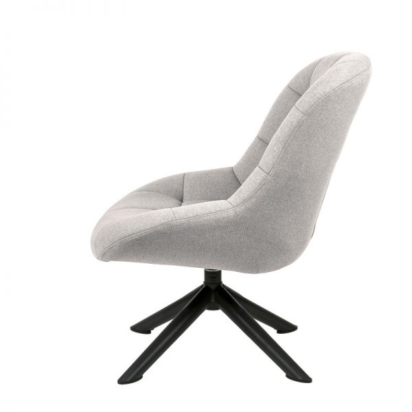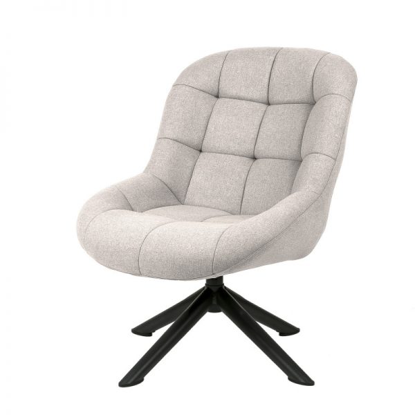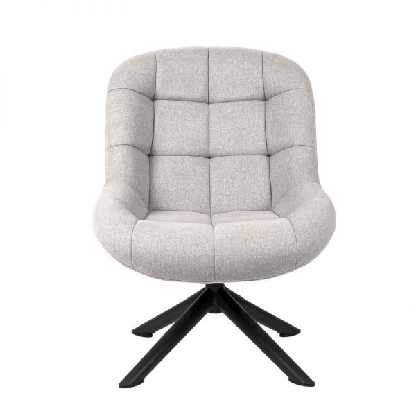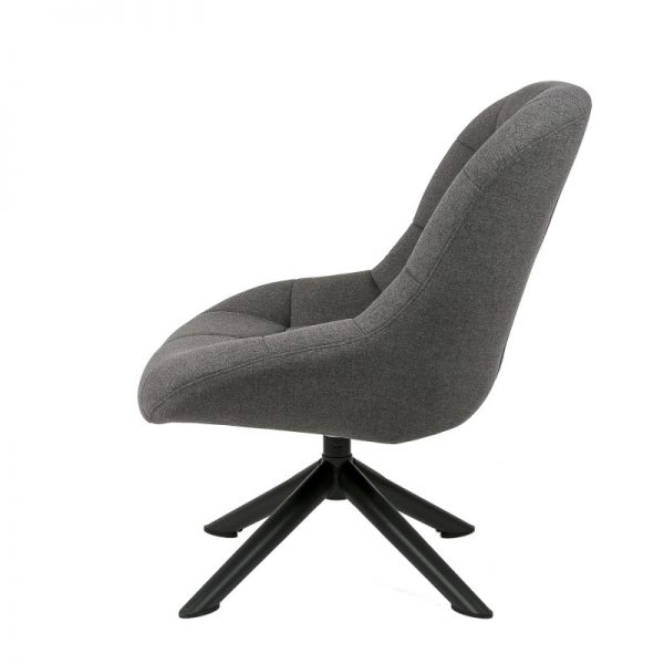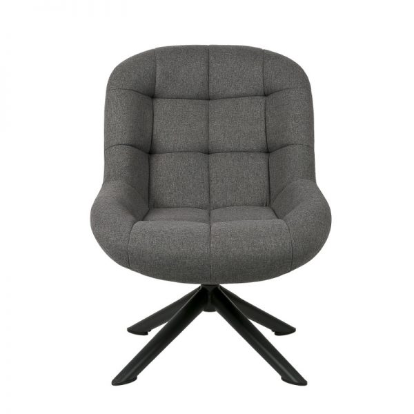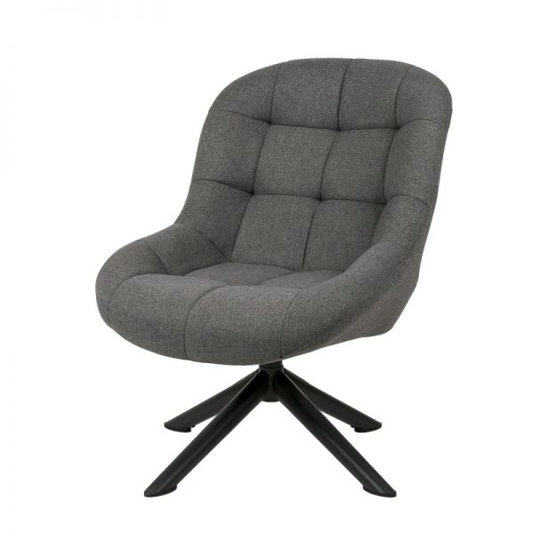 Butaca giratoria tapizada con patas de estrellas en metal acabado en color negro.