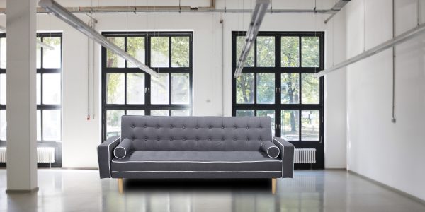 Sofá cama con apertura de sistema libro con reposabrazos. Longitud