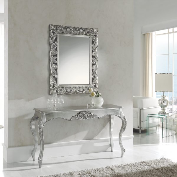 Espejo de pared con marco de madera plata. Horizontal o vertical.