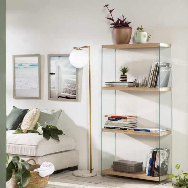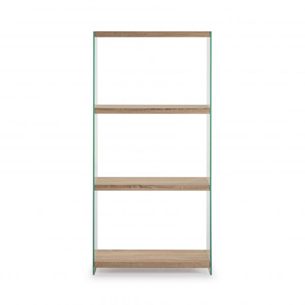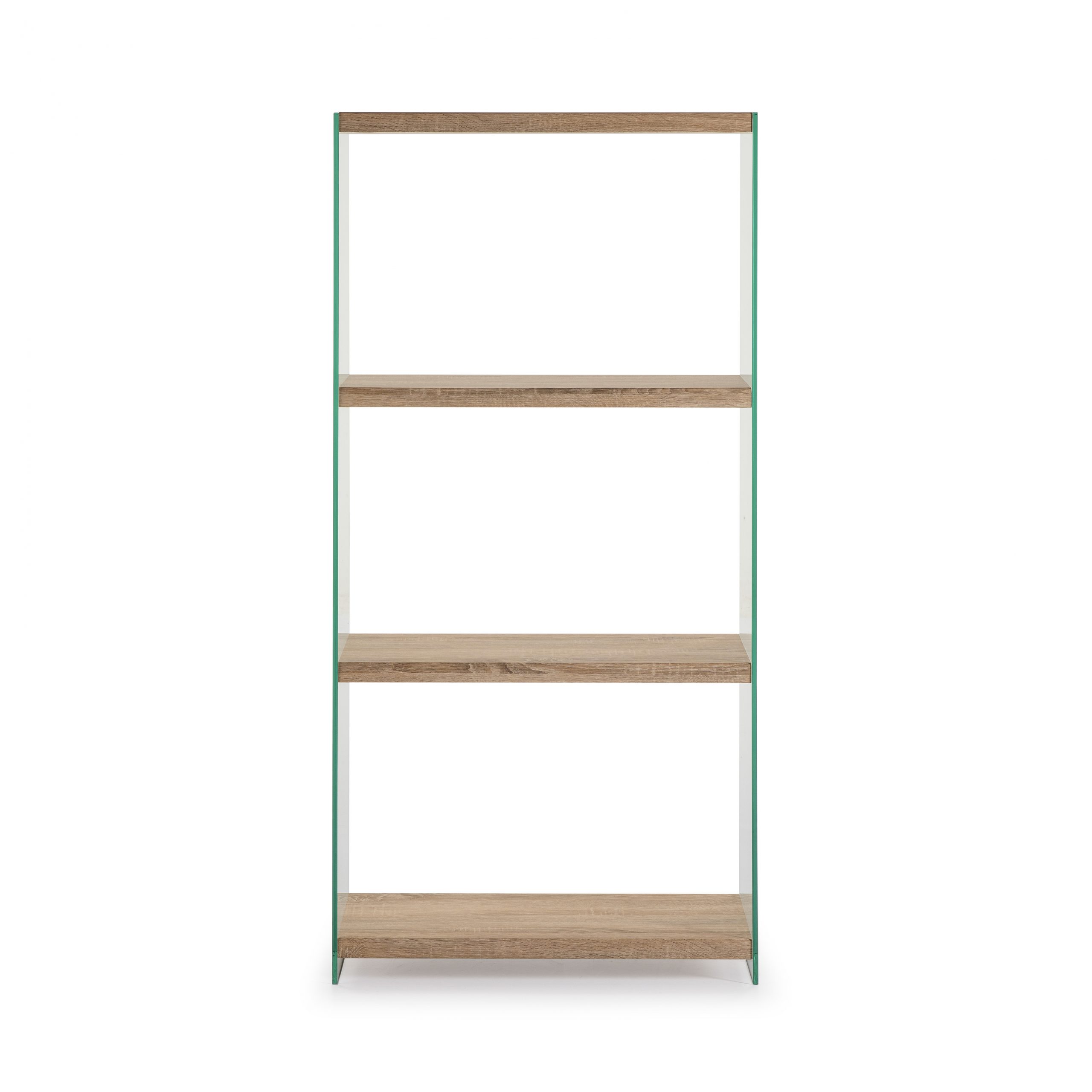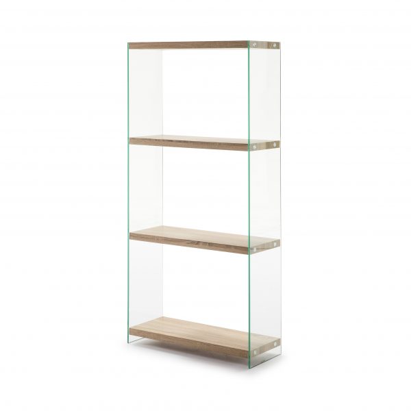 Estanteria cristal con estante de madera.