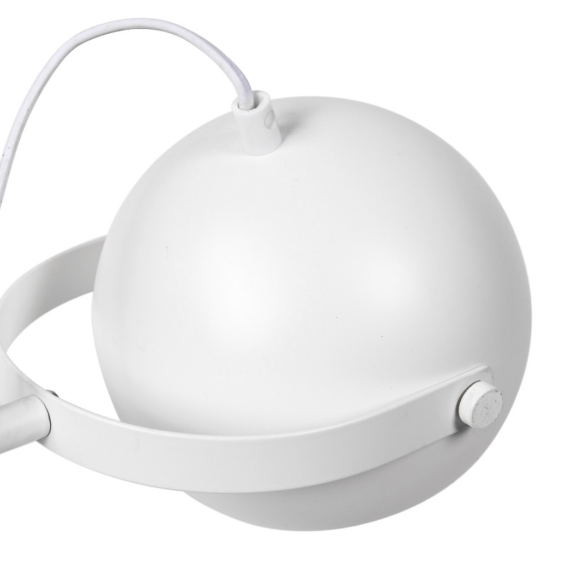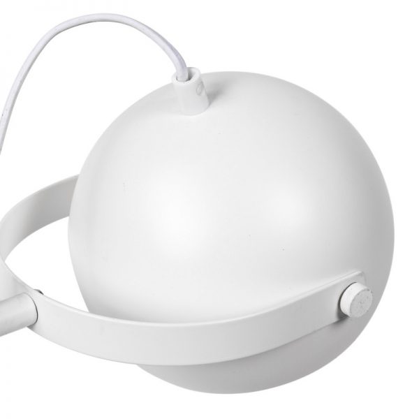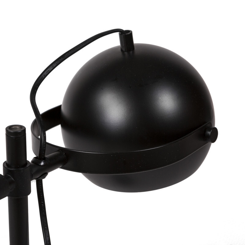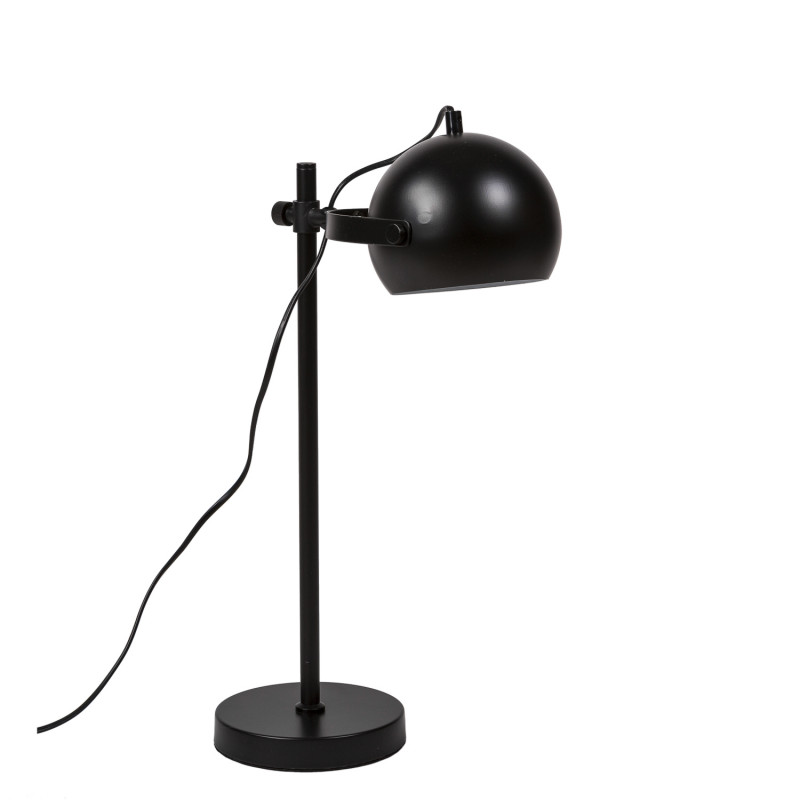 Lámpara de sobremesa con estructura metálica y foco de forma redonda.