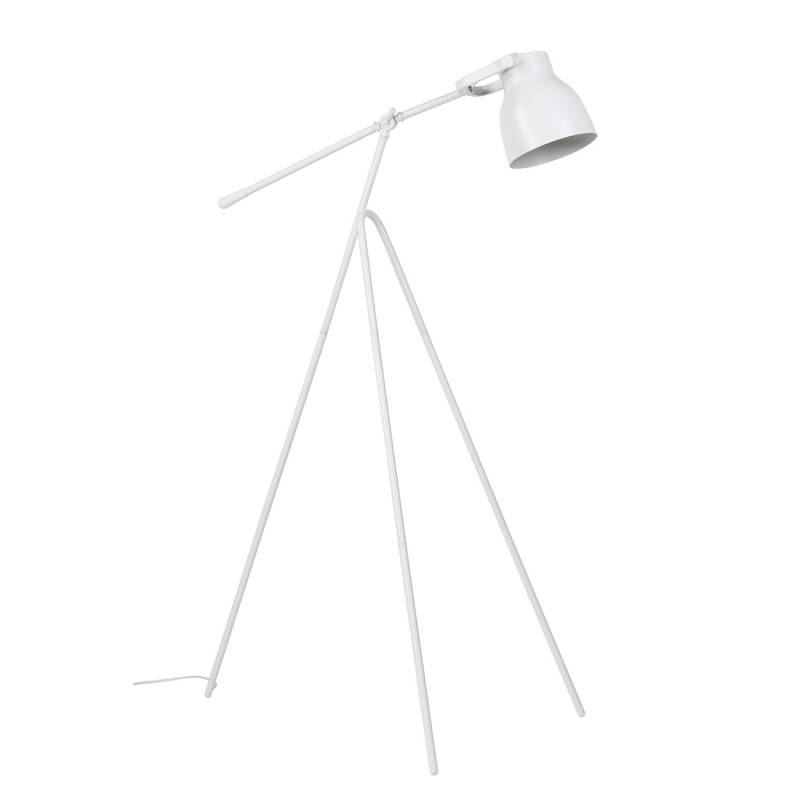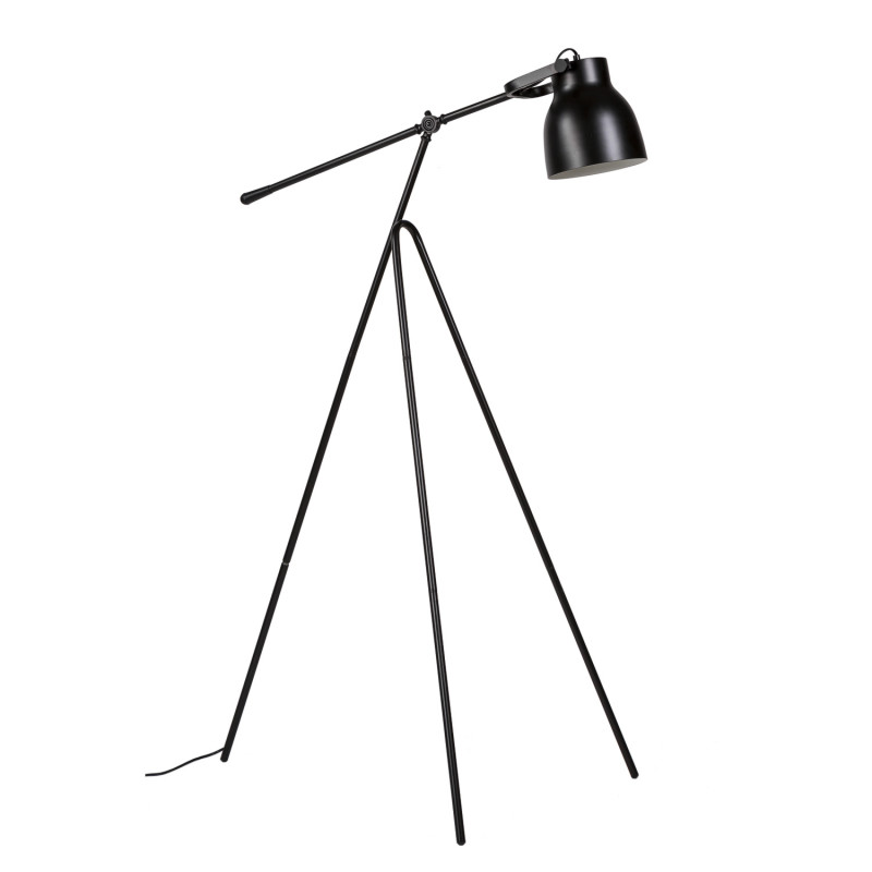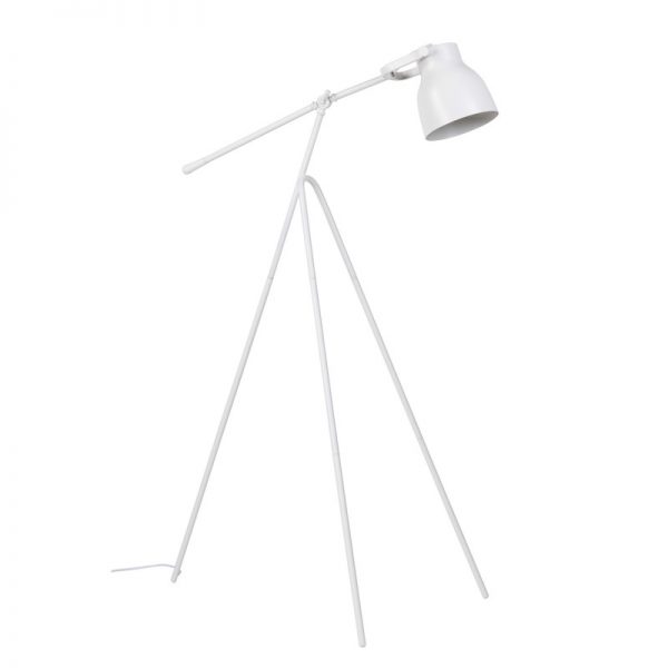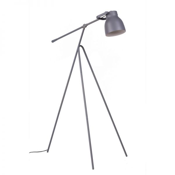 Lámpara de suelo de diseño moderno con una base tipo trípode de metal.