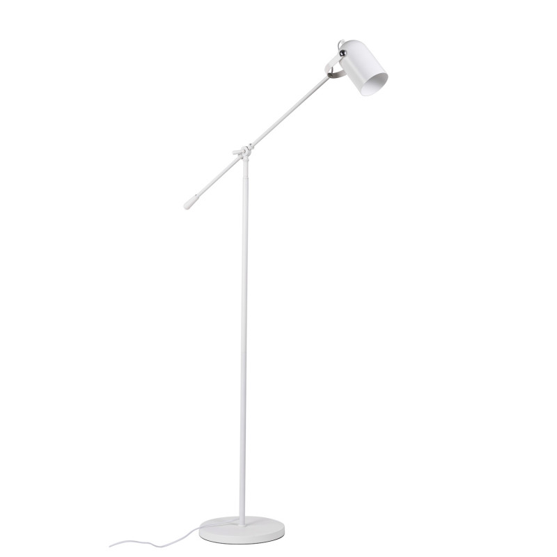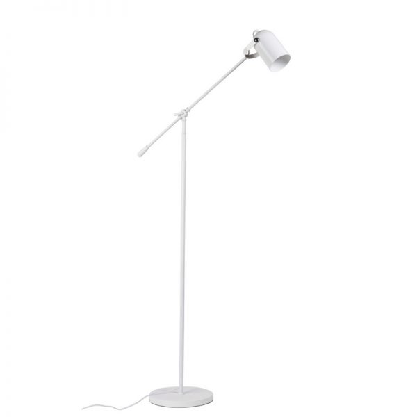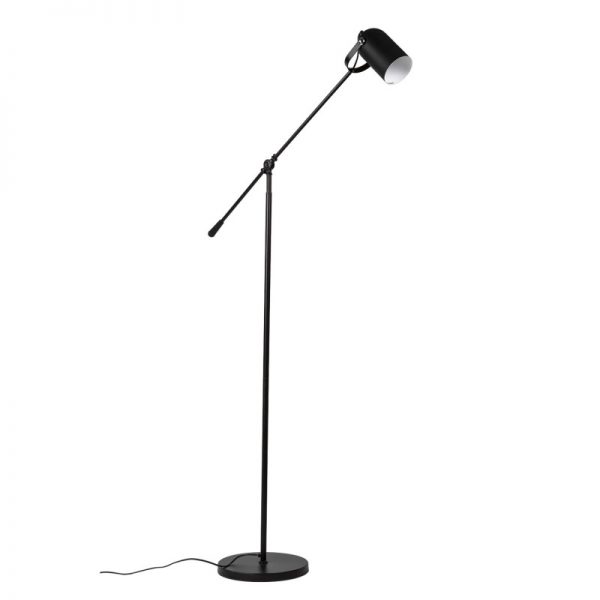 Lámpara de suelo con estructura metálica con foco en forma cilíndrica fabricada en metal.