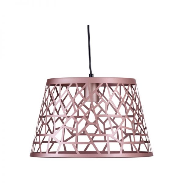 Lámpara techo de forma tradicional con diseño geométrico calado, lo que la hace un modelo muy de tendencia, se une el color rosa gold muy utilizado en tecnología. Fabricada en metal.