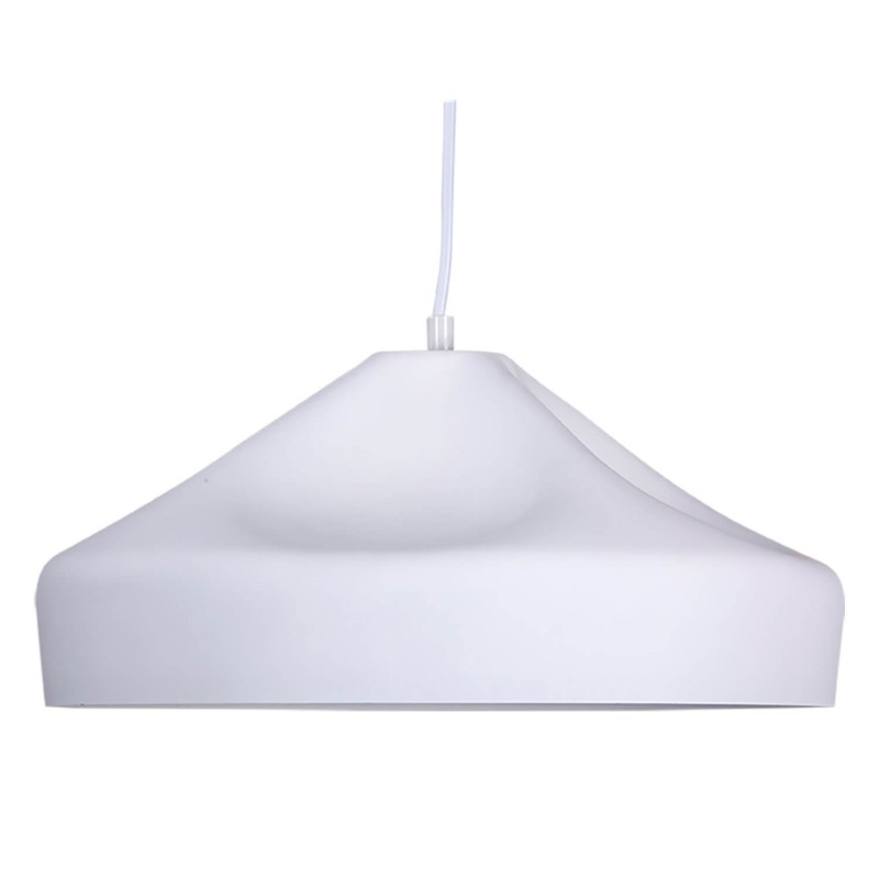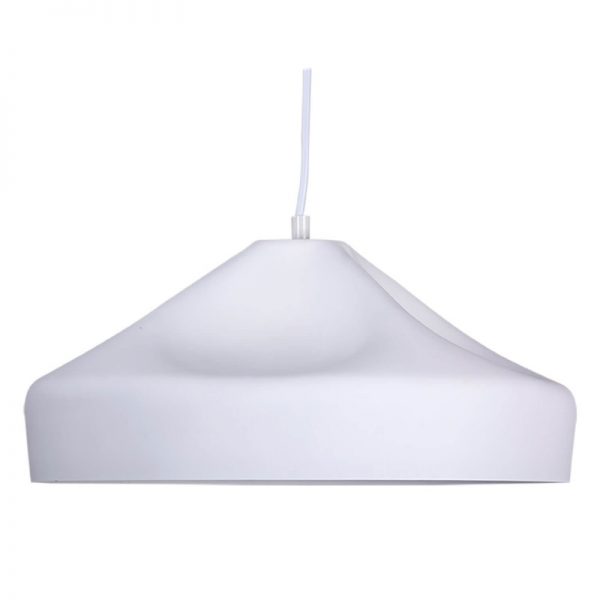Lámpara techo de diseño actual, las suaves curvas le dan una imagen muy delicada. Fabricada en aluminio color blanco. Para colocar sola o combinada con el mismo diseño de forma tubular.