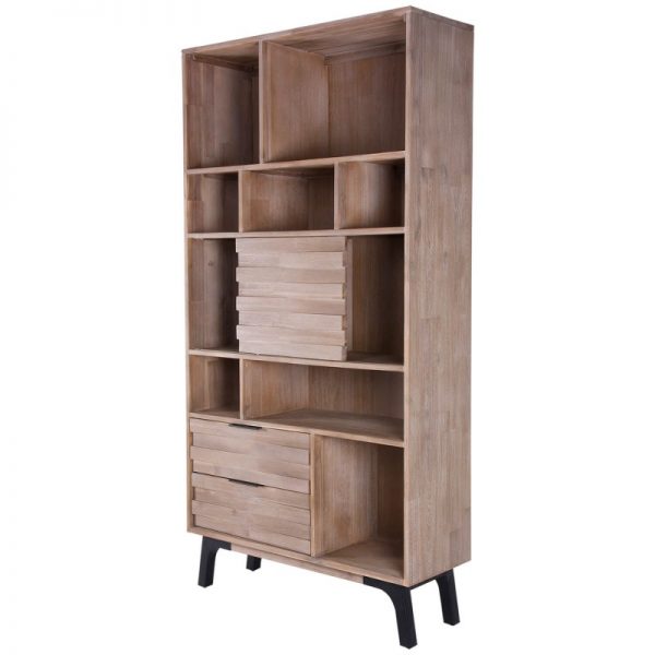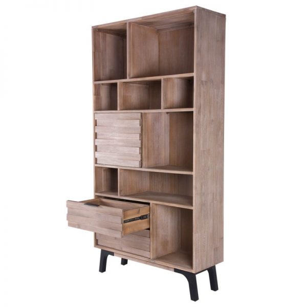 Librero alto de la colección Ámsterdam fabricado en madera maciza de acacia. Este librero de gran capacidad puede ser utilizado como auxiliar tanto en comedores como en otras partes de la casa.