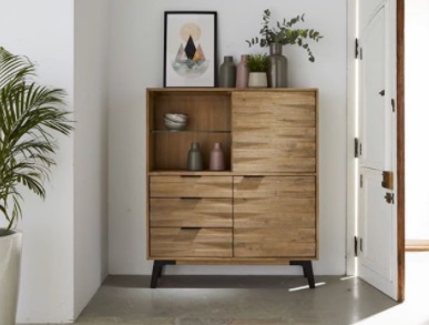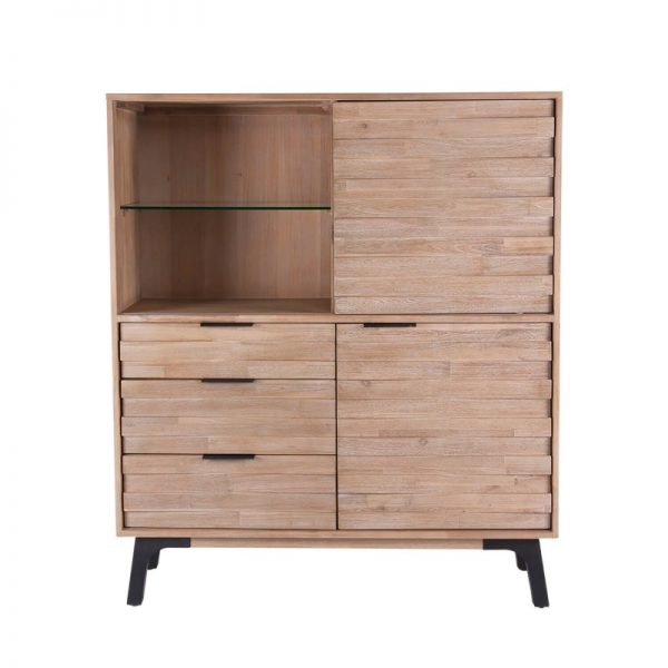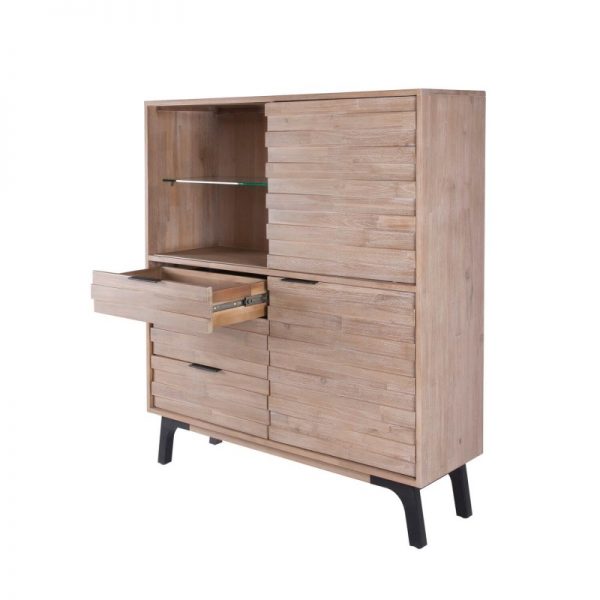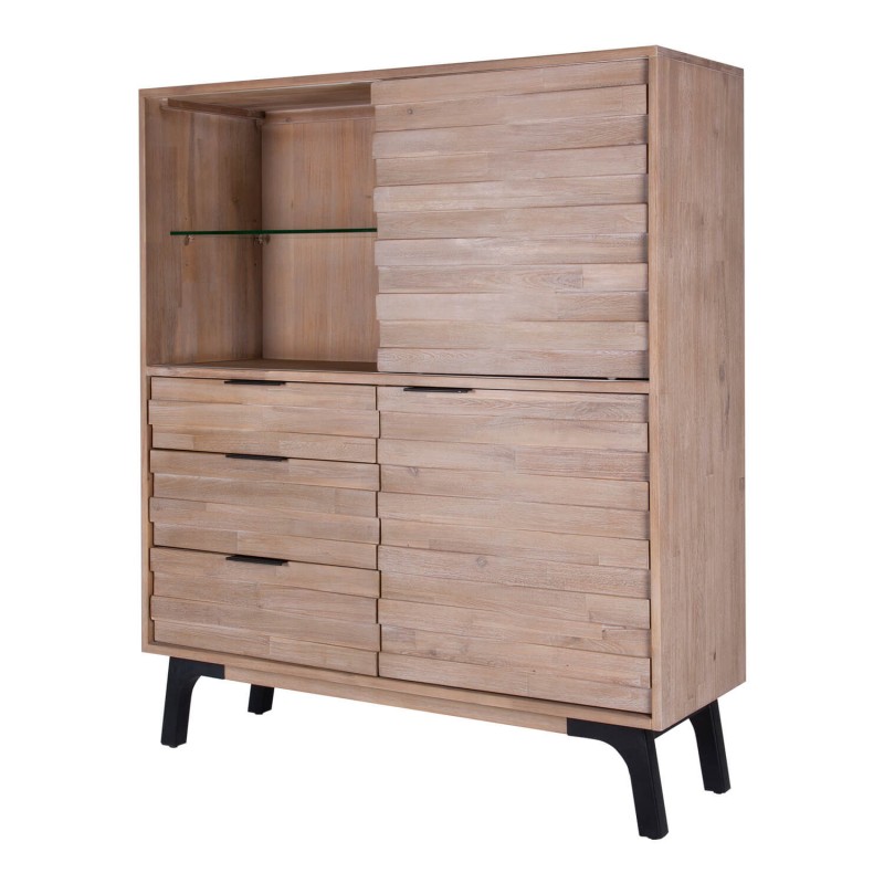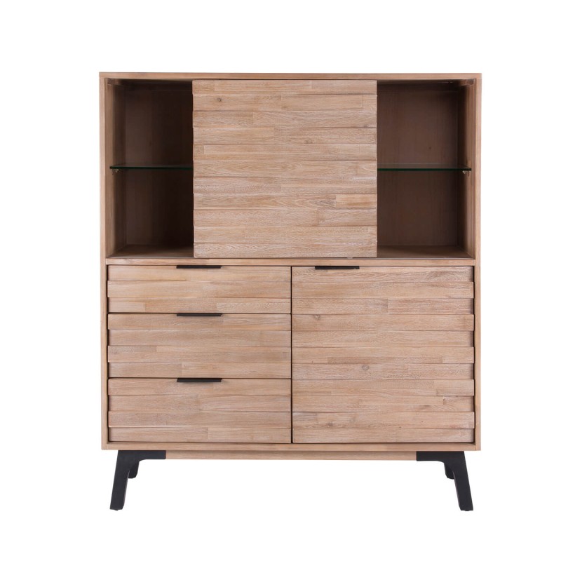 Librero bajo o vitrina de gran versatilidad fabricado en madera maciza de acacia en acabado natural, que destacará en cualquier rincón de tu casa.