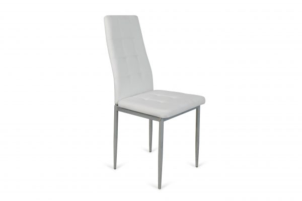 Silla tapizada en Polipiel Blanca. Asiento y respaldo con costuras