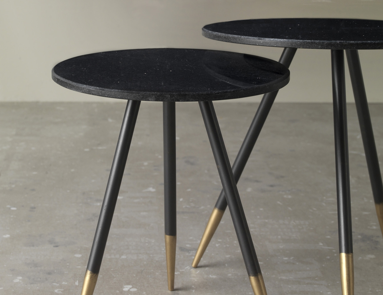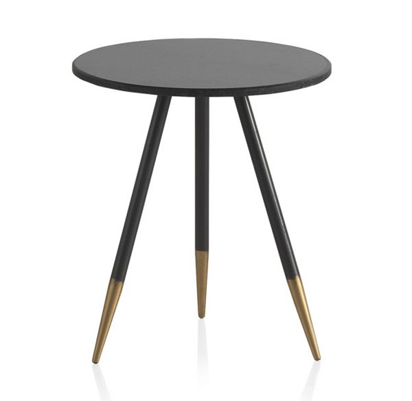 MESA AUXILIAR TAPA MARMOL NEGRO CON PATAS METALICAS