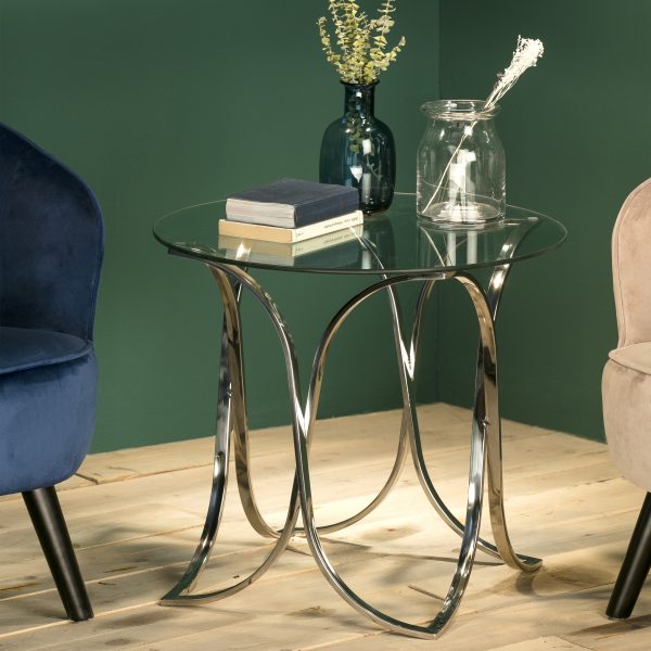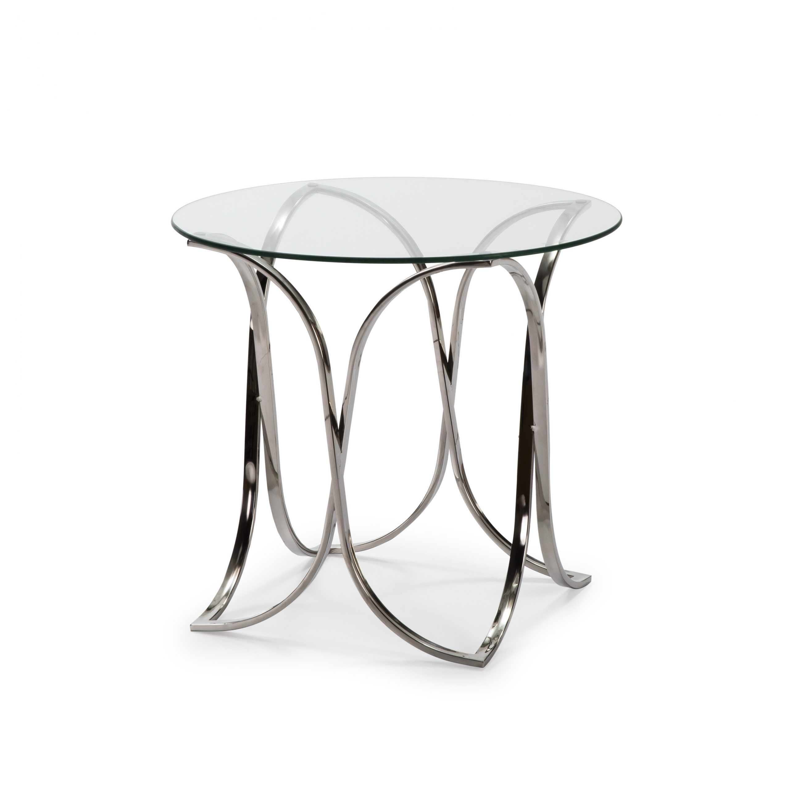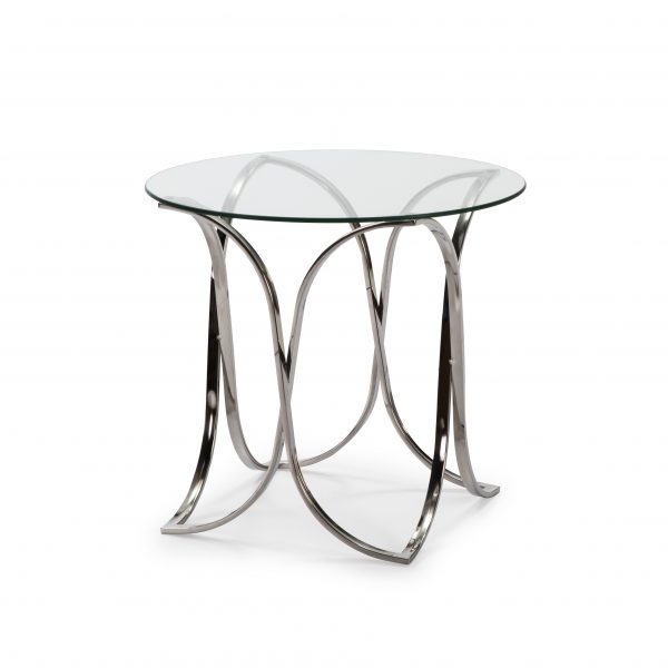 Mesa de centro de cristal templado de 8mm. Estructura de acero inoxidable.
