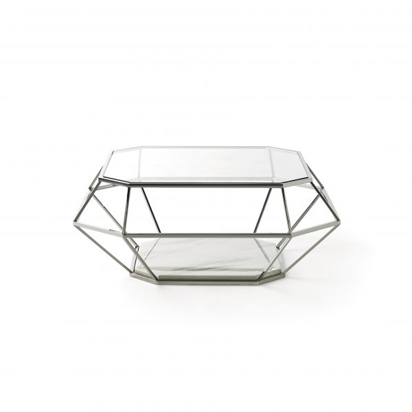 Mesa de centro cristal templado 8mm. Estructura acero inoxidable.