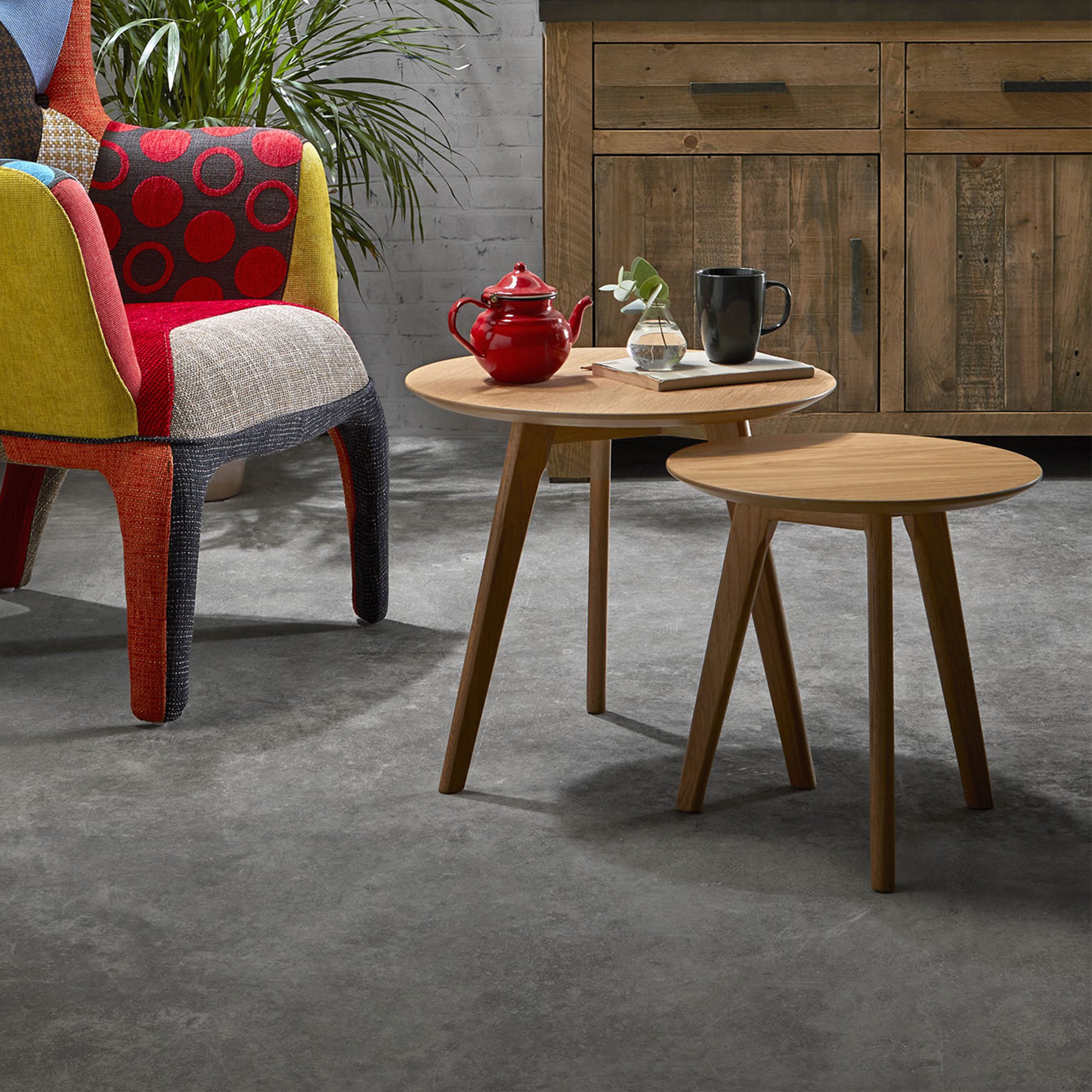 Juego de dos mesas de centro. Tapa cristal templado. Patas de madera de roble.