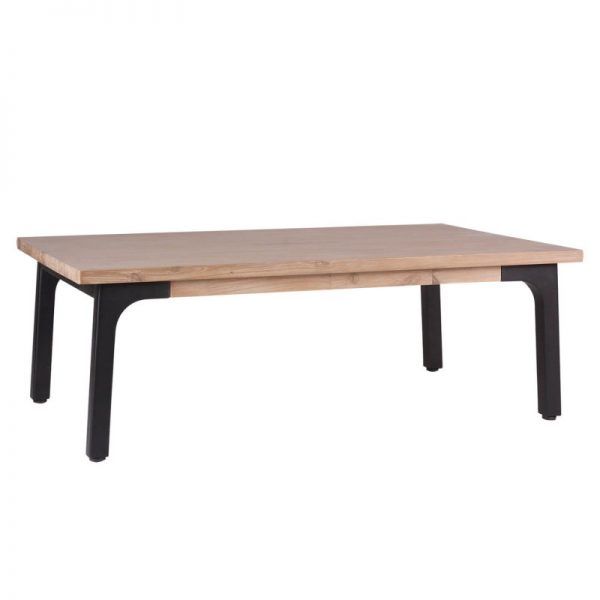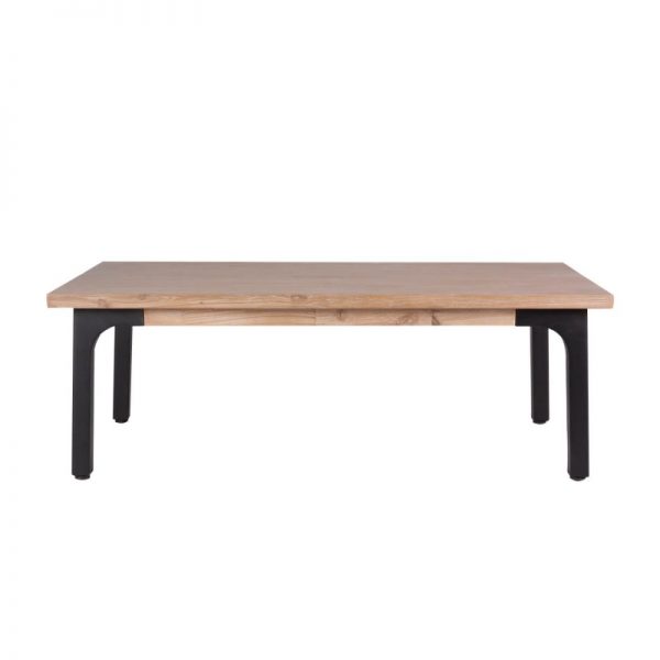 Mesa de centro rectangular fabricada en madera maciza de acacia acabado en natural y con patas metálicas en mate. Todos los elementos de esta mesa de centro la hacen muy robusta: tapa maciza de 30mm grosor, patas metálicas con regulación de altura 40x40mm y refuerzos en su parte interior.