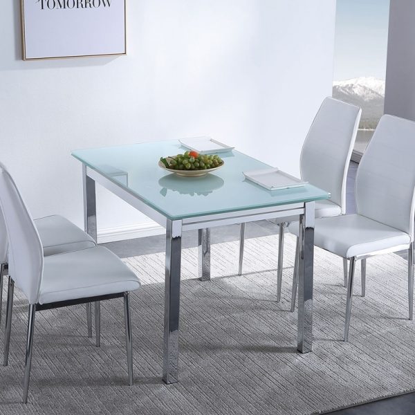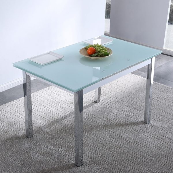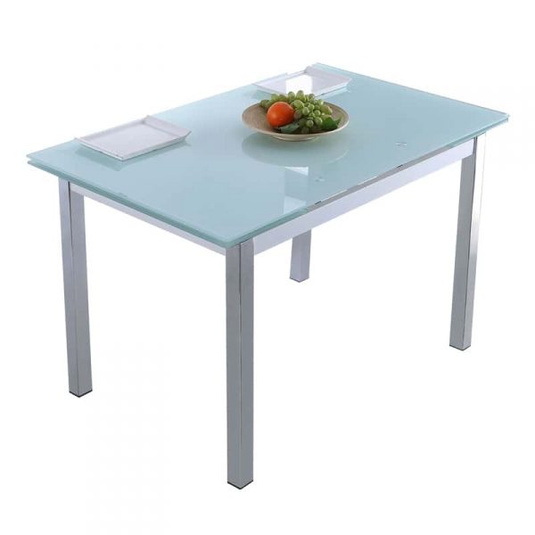 La mesa de comedor extensible Milan 120 es una mesa de estilo contemporáneo con tablero doble extensible mediante sistema de fácil accionamiento, ideal para el comedor o la cocina. Apta para 4-6 comensales, es una mesa bonita, segura, resistente y fácil de limpiar.
