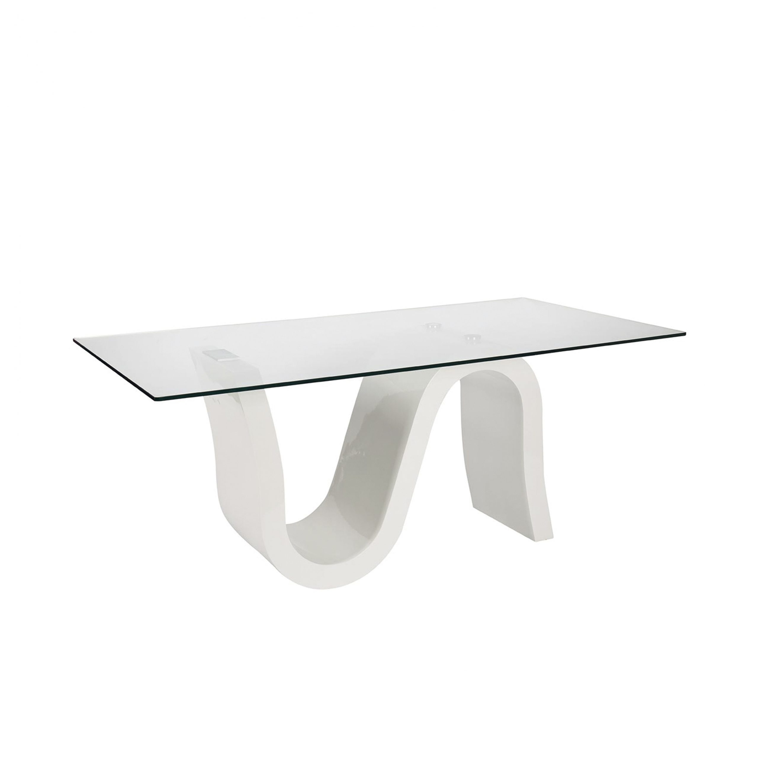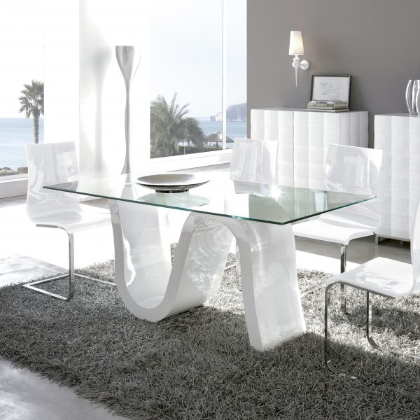 Mesa cristal templado de 12mm. Patas de madera lacada.
