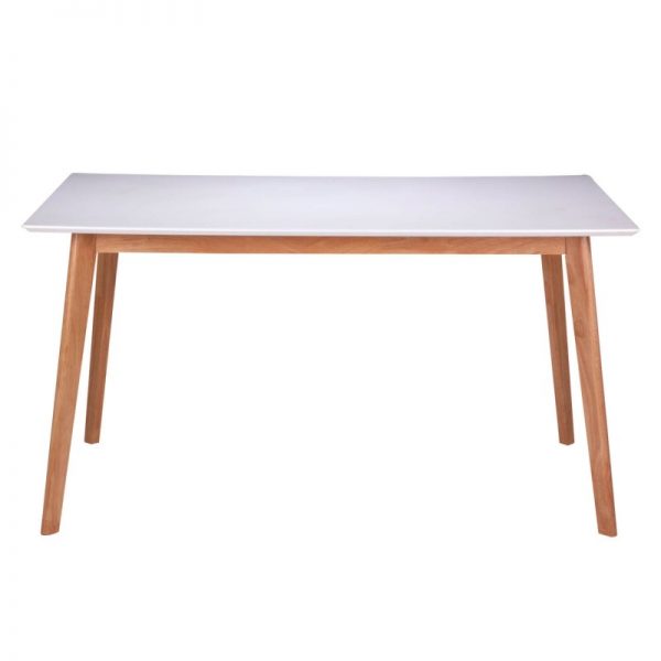 Mesa de madera rectangular de 120x75cm. Patas fabricadas en madera de caucho y tapa fija lacada en blanco de 18mm de espesor.