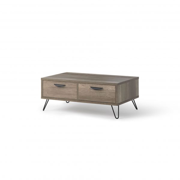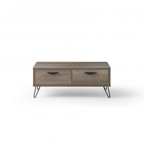 Mesa centro de madera chapada. Patas metal pintado. Kit facil montaje.