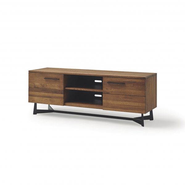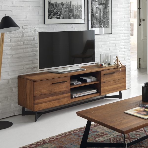 Mueble tv de madera maciza de roble. Patas metal pintado