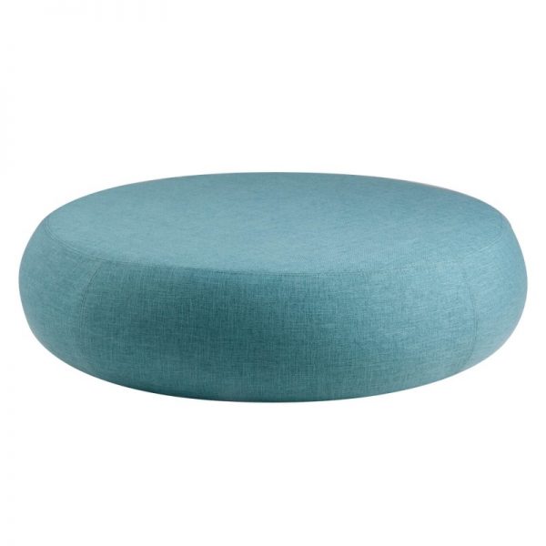 Puff redondo tamaño grande de 100cm de diametro. Espuma de alta densidad 24. Estructura de madera y tapizado en tela color azul.