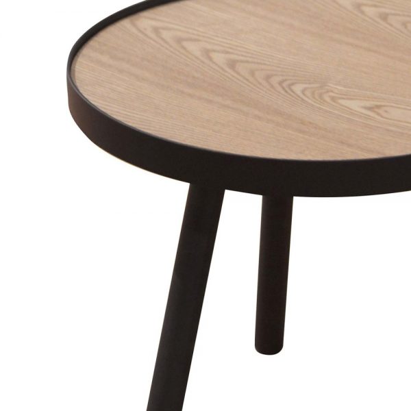 Tapa de MDF con chapa de madera. Estructura y patas metálicas en color negro.