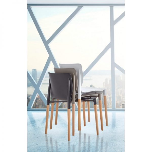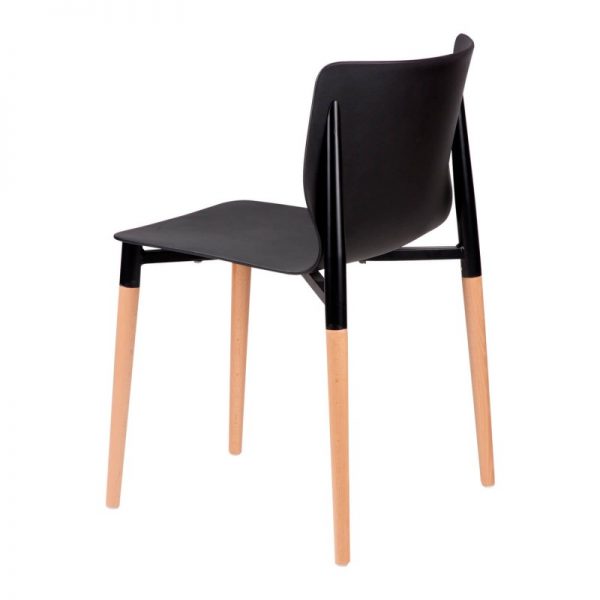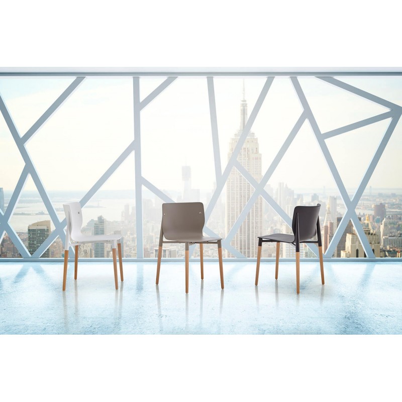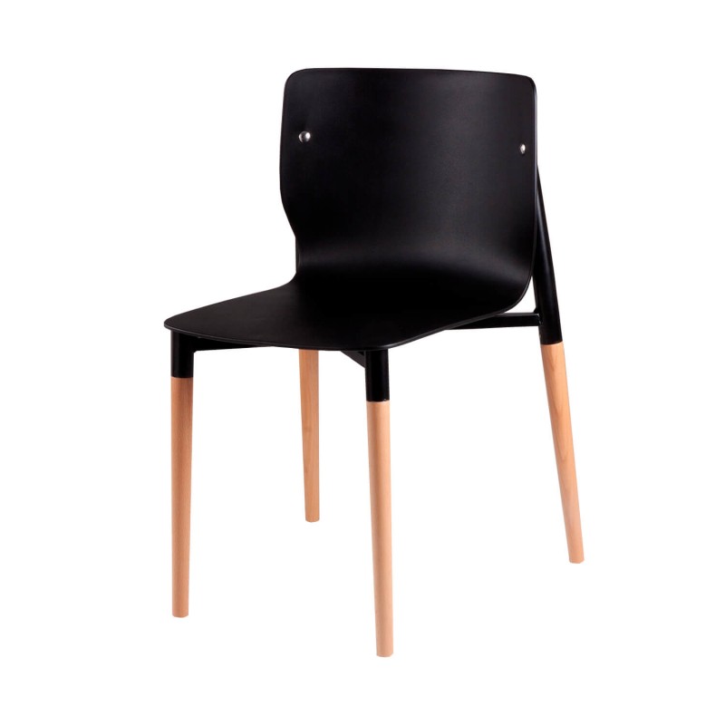 Silla de plástico con estructura de polipropileno y acabado de patas en madera de haya.