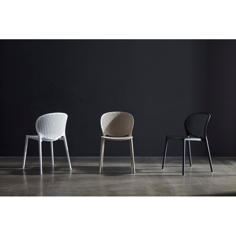 Silla de plástico con estructura fabricada en polipropileno. De fácil movilidad gracias a su diseño ligero y sencillo.