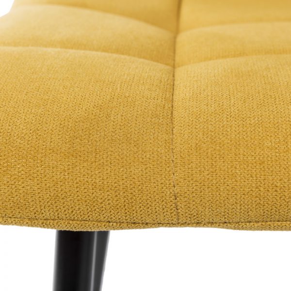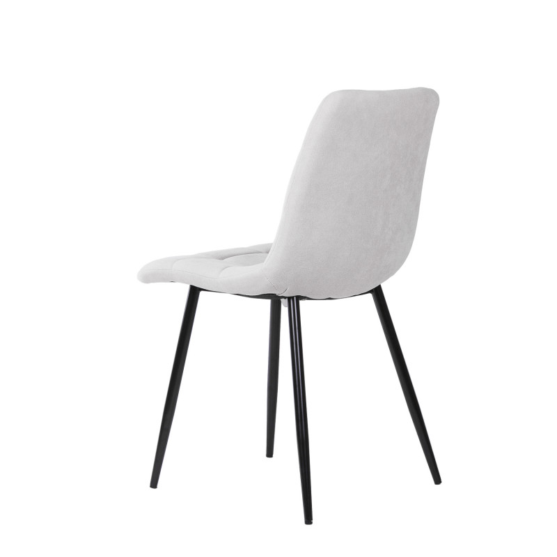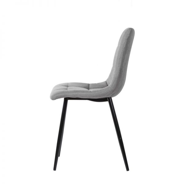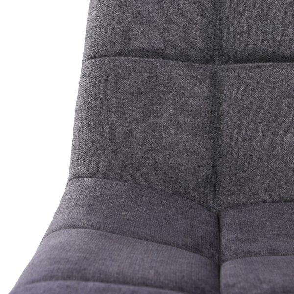 Es una silla cómoda y su tapizado en tela le da un toque moderno y elegante.