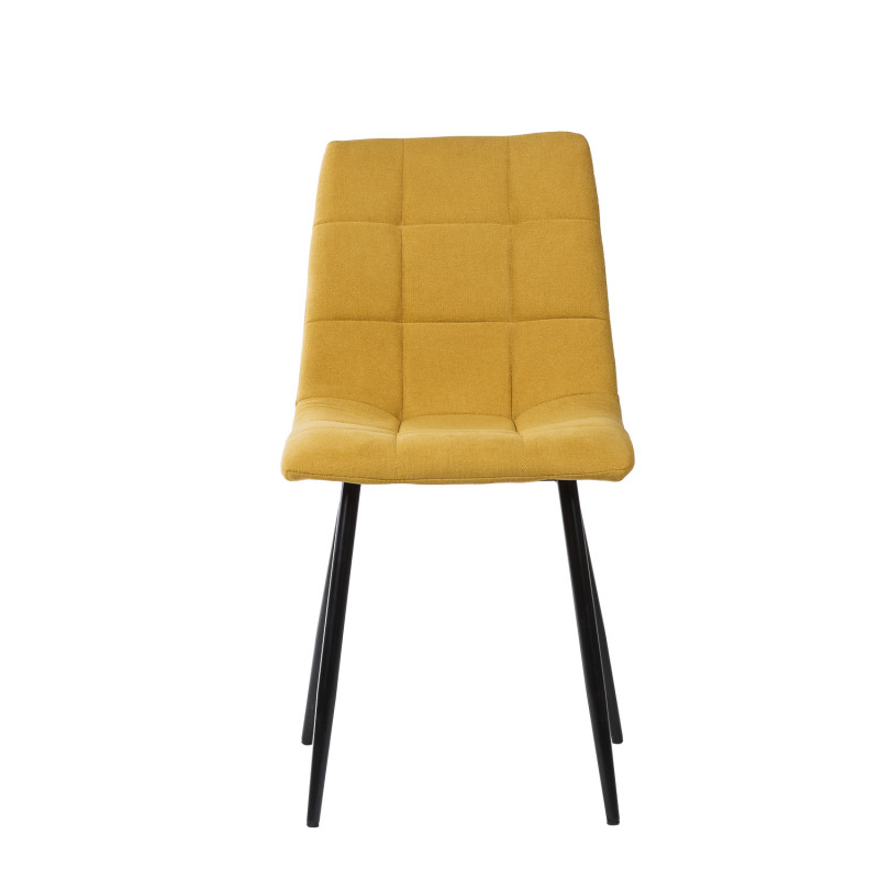 Silla metálica con patas cónicas acabadas color negro. Resistente y robusta por la composición de sus materiales.