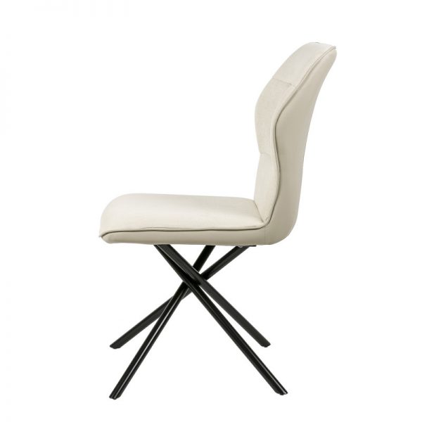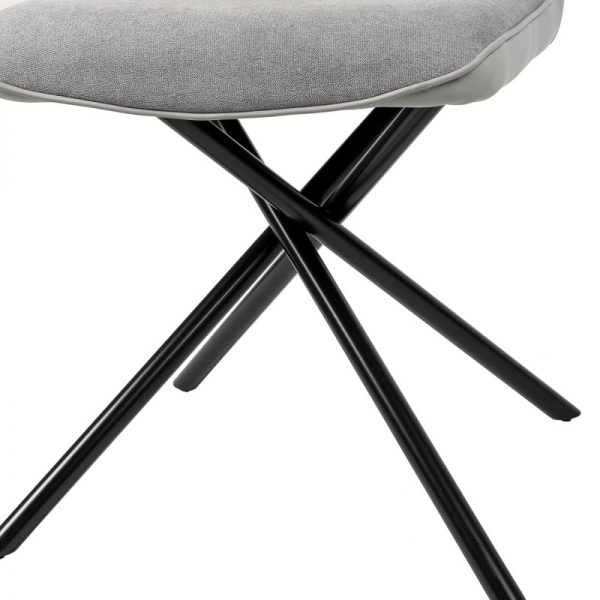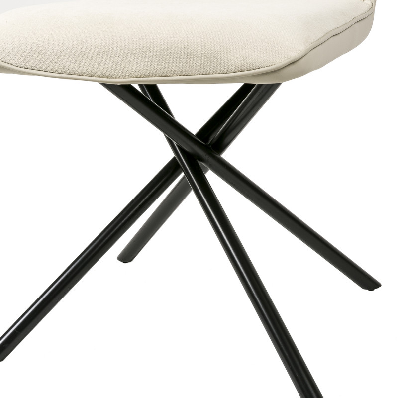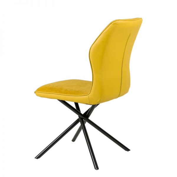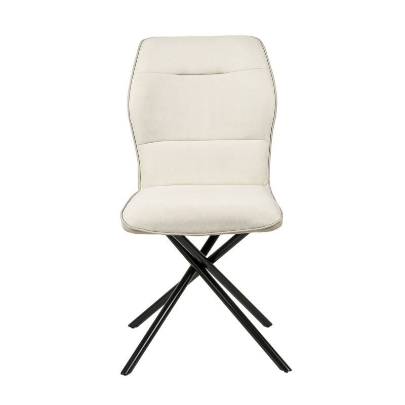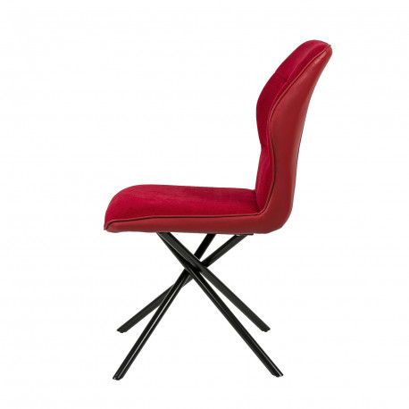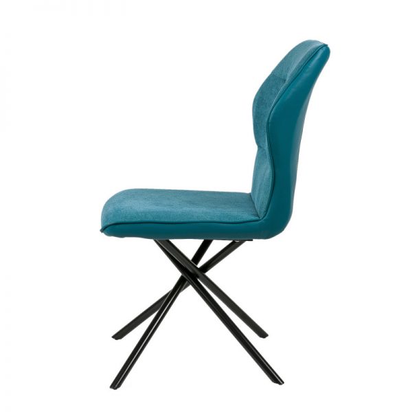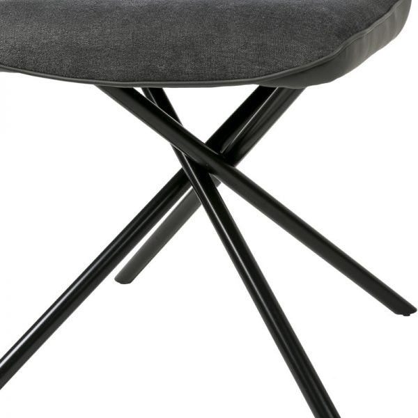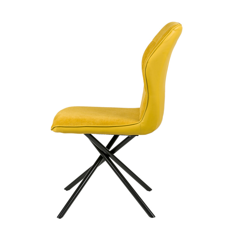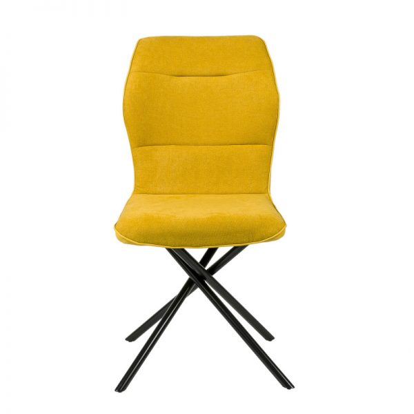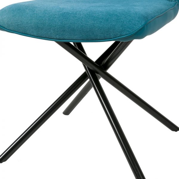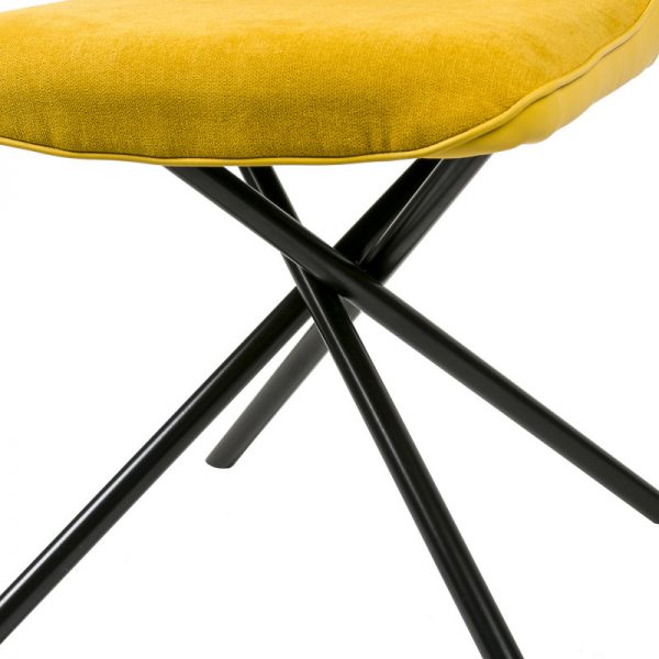Esta silla tiene patas de metal de color negro cruzadas entre ellas, una base muy original para una silla encantadora y sugestiva en todas sus variantes de colores; ideal para amueblar con un toque de personalidad cualquier espacio.