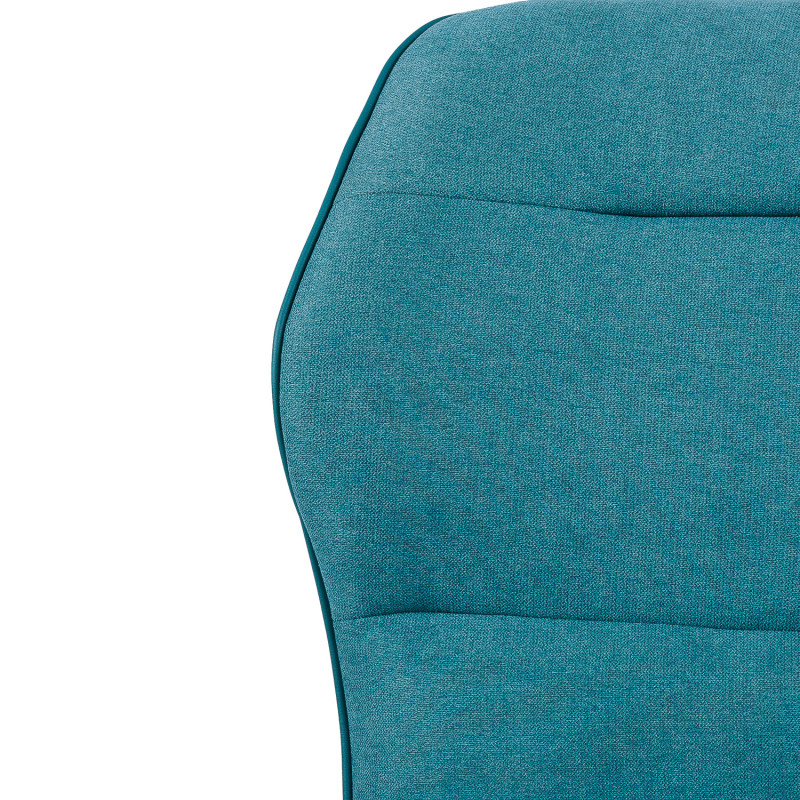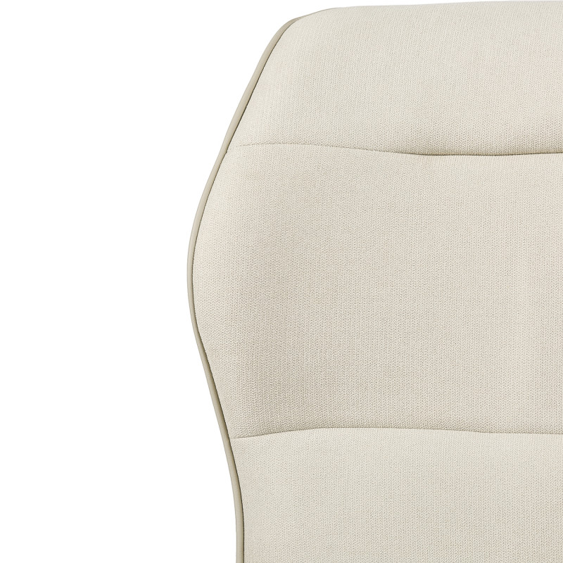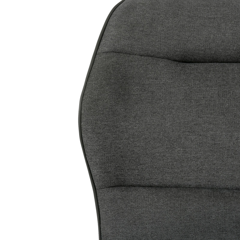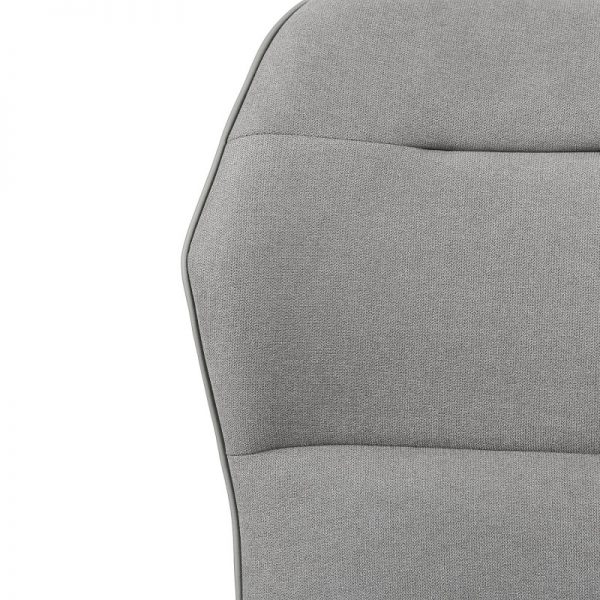 Este modelo tiene la parte frontal del asiento de tela y el respaldo de polipiel.