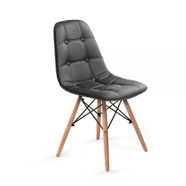 Estructura de varillas metálicas de color negro y patas de madera de haya.
