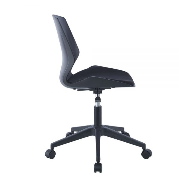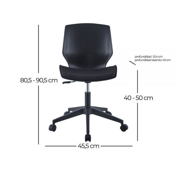 El asiento esta fabricado en polipropileno, compuesta por 5 patas con ruedas que facilitan el desplazamiento.