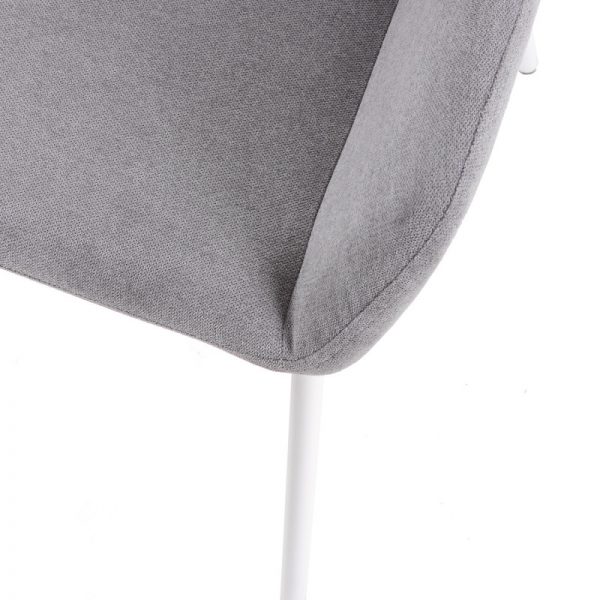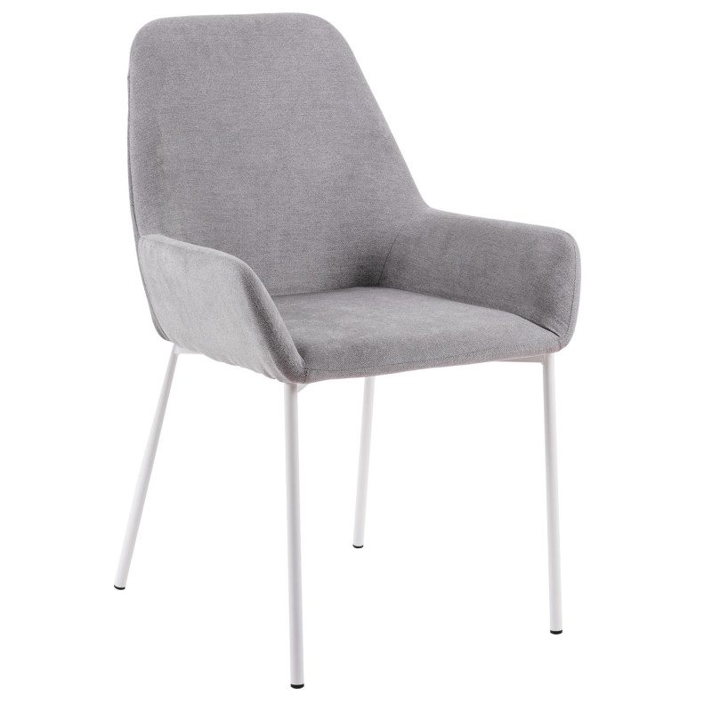 Silla tapizada con estructura metálica, con patas lacadas blancas.