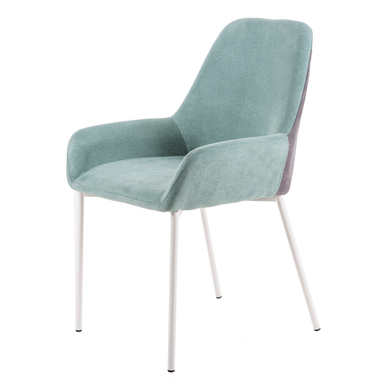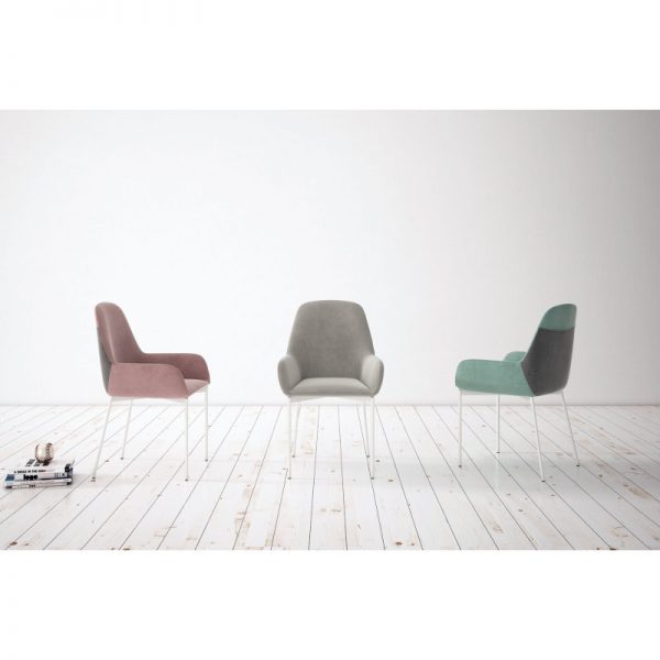 Esta silla tapizada combina dos tonos de color, el claro en el frontal, y uno más oscuro en la parte trasera.