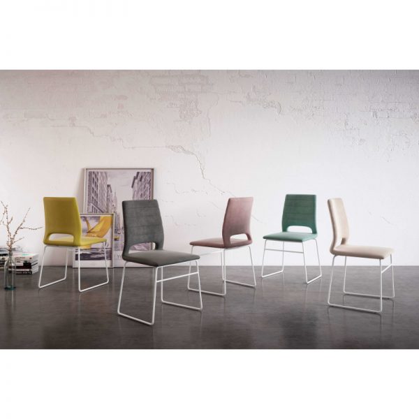 Una silla tapizada que combina perfectamente con todo tipo de mesas.