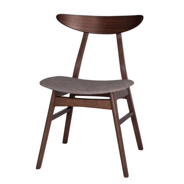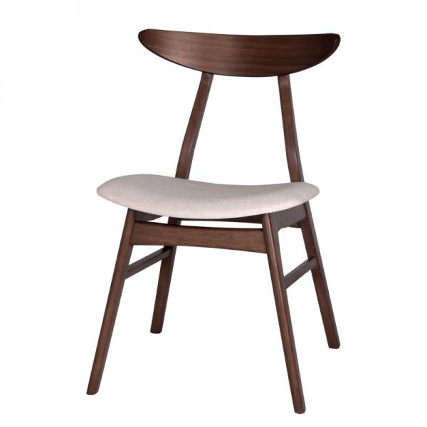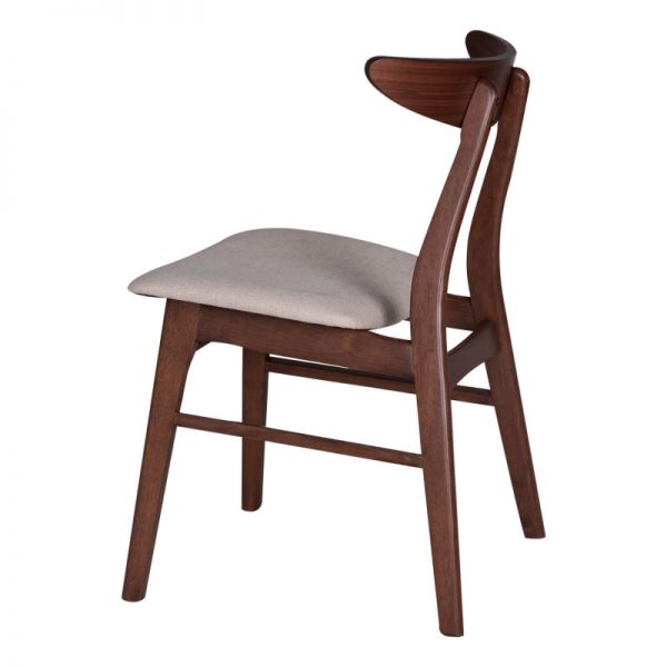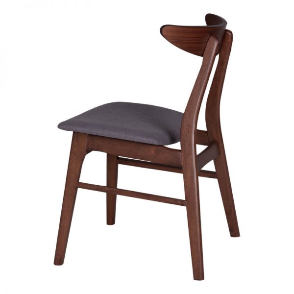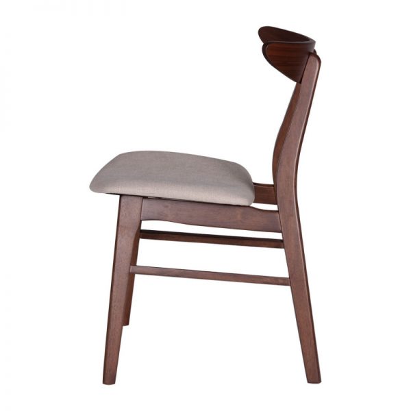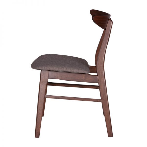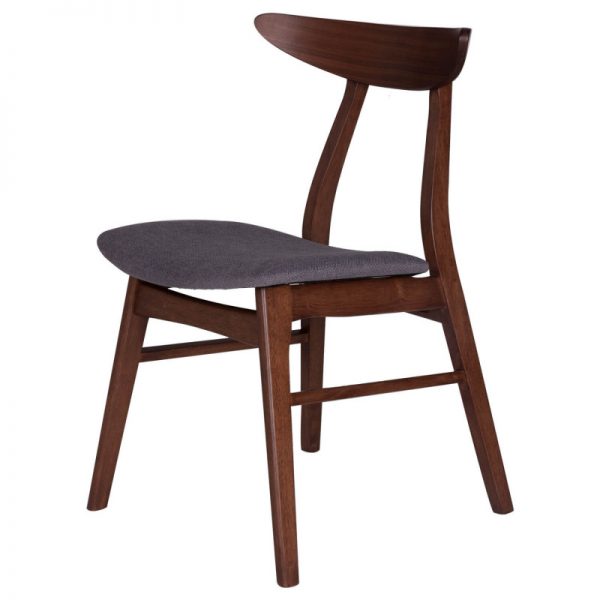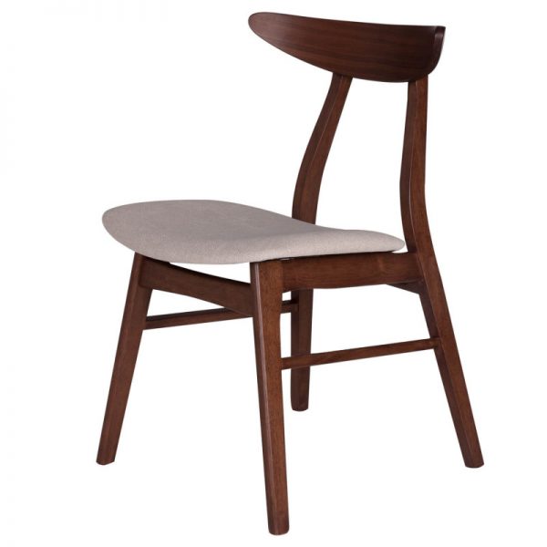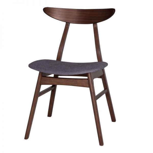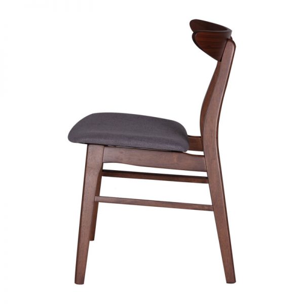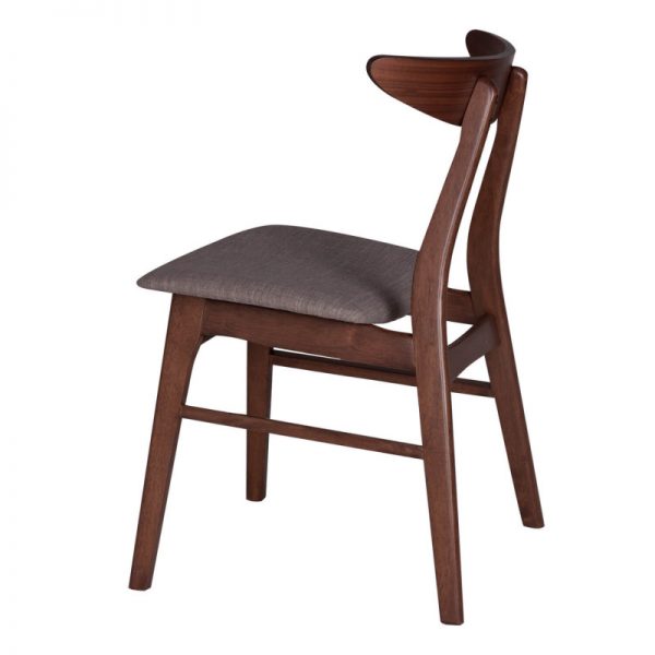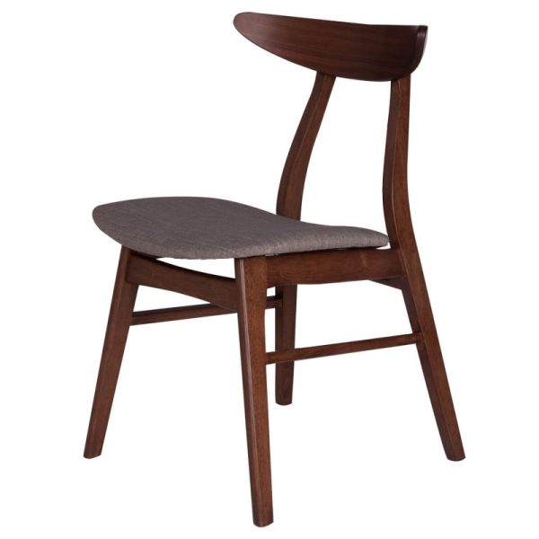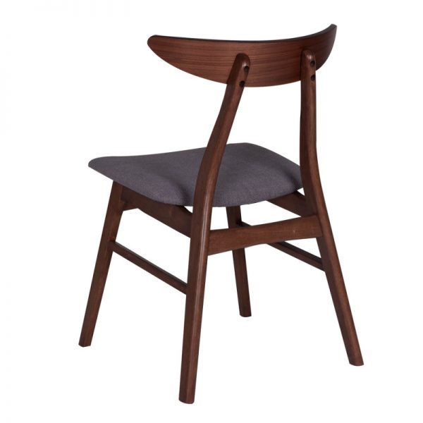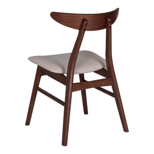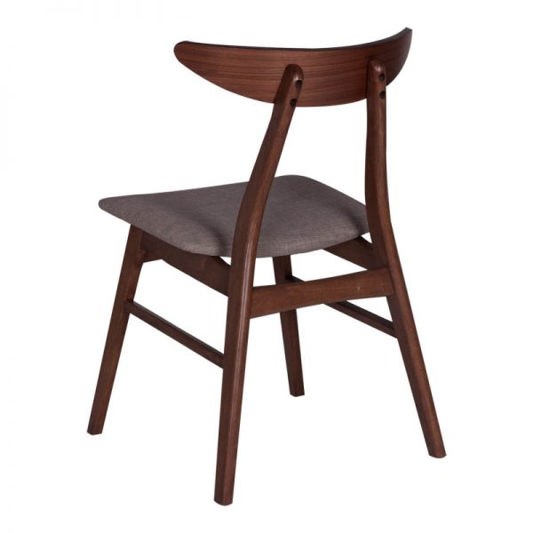 Silla de diseño minimalista fabricada en madera de hevea y con respaldo en chapa de nogal.