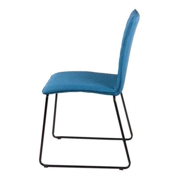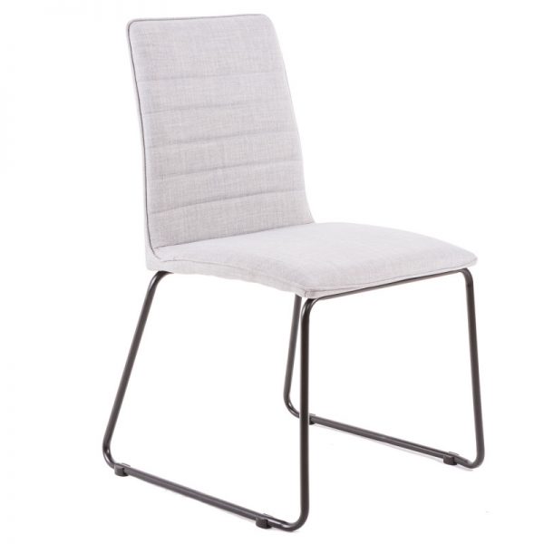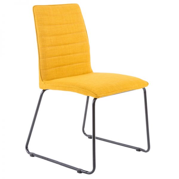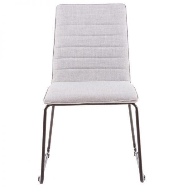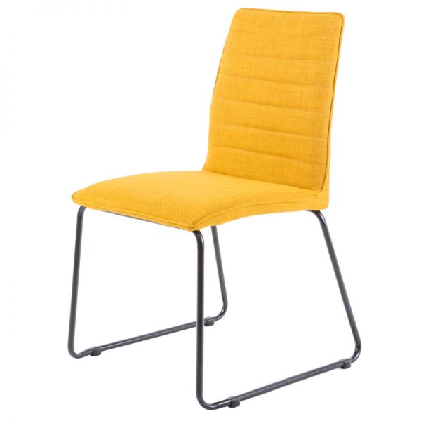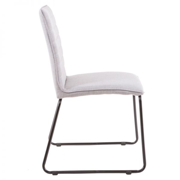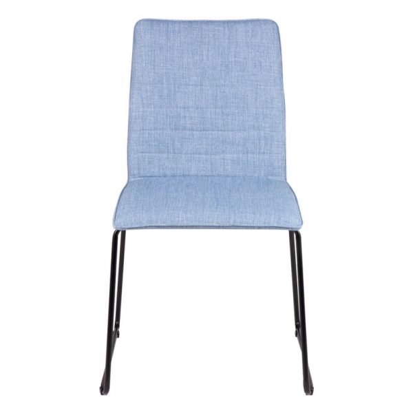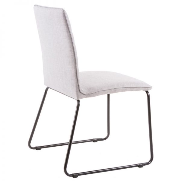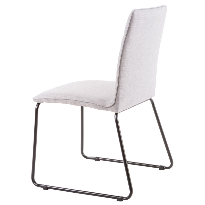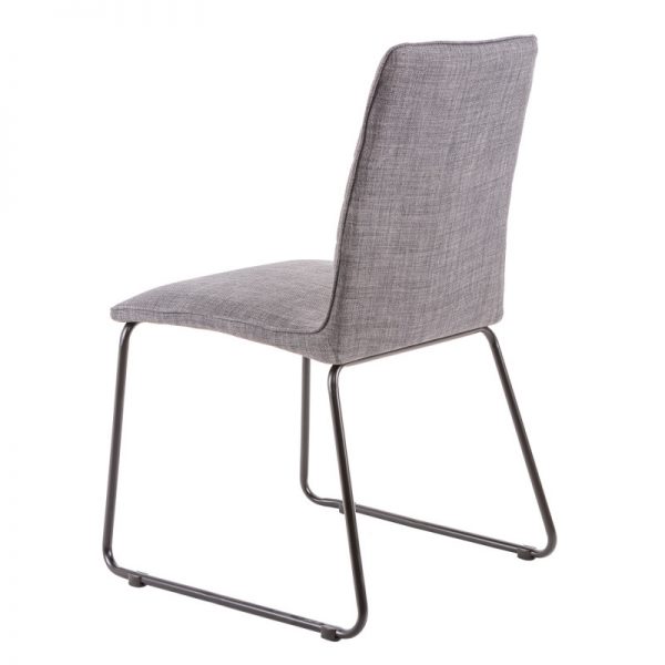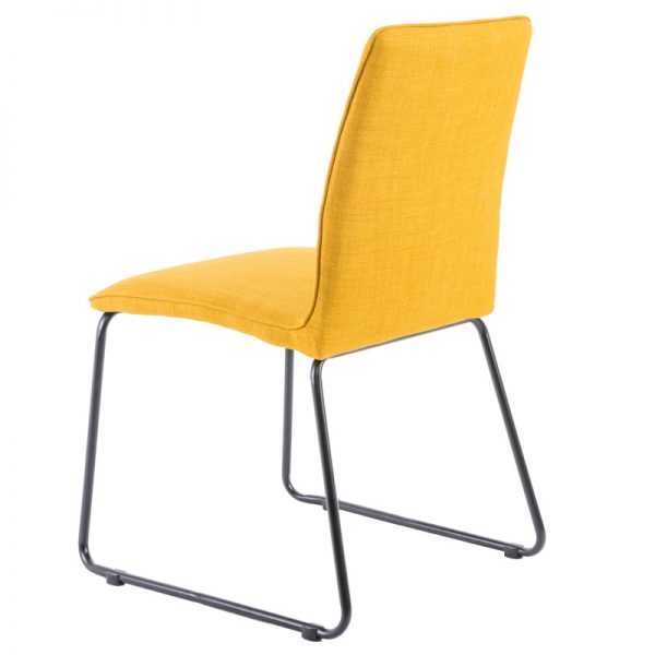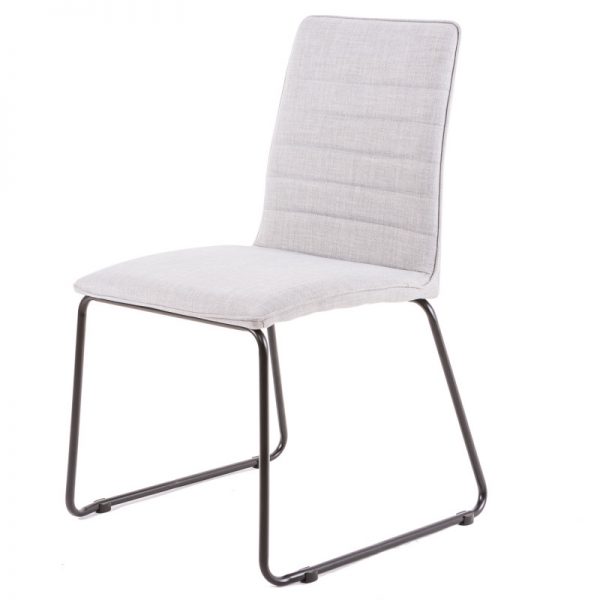 Silla tapizada con estructura de acero y patas en negro. De líneas rectas, tiene un diseño que destaca por su sencillez y ligereza.