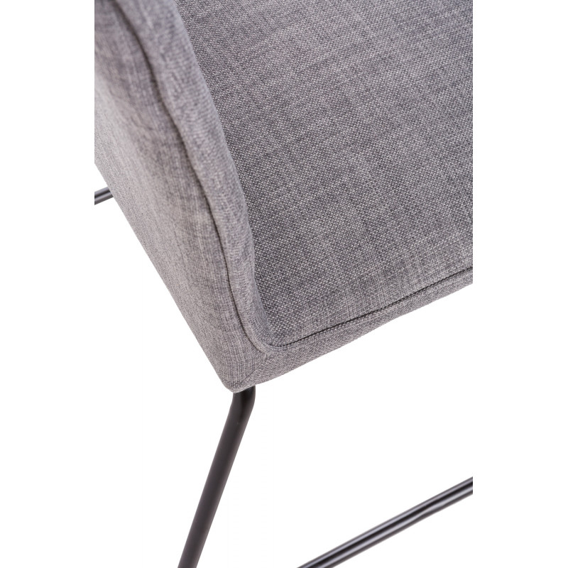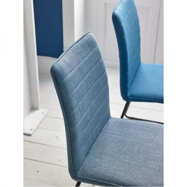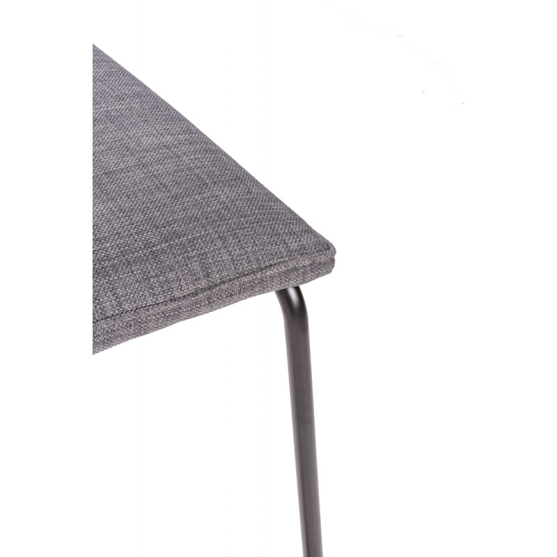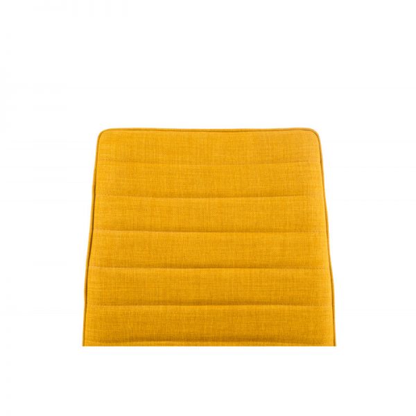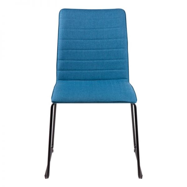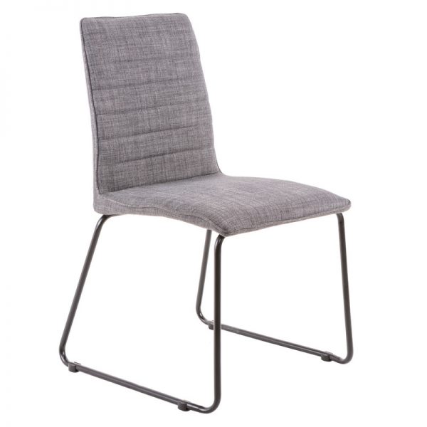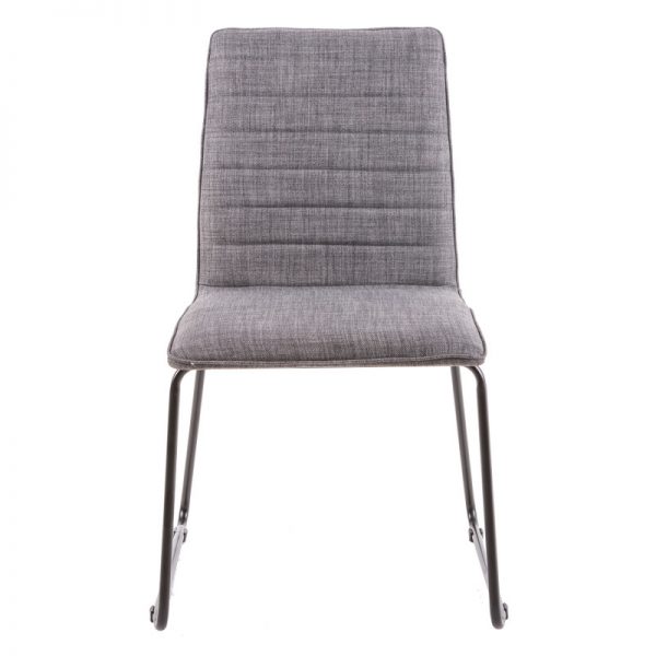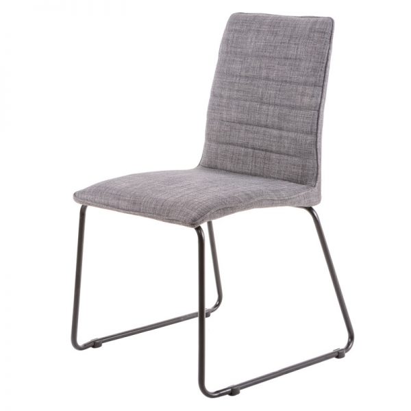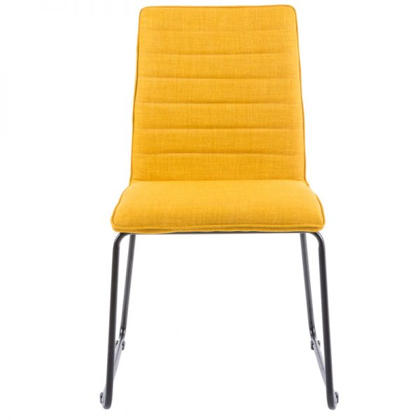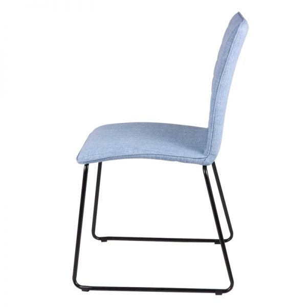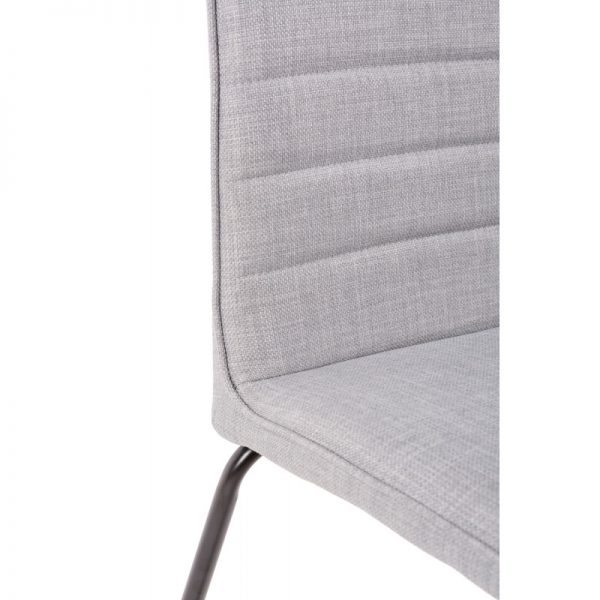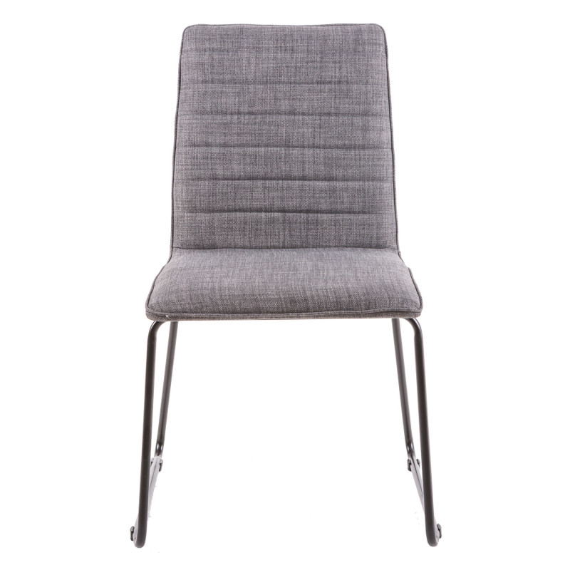 Silla tapizada con estructura de acero y patas en negro. De líneas rectas, tiene un diseño que destaca por su sencillez y ligereza.